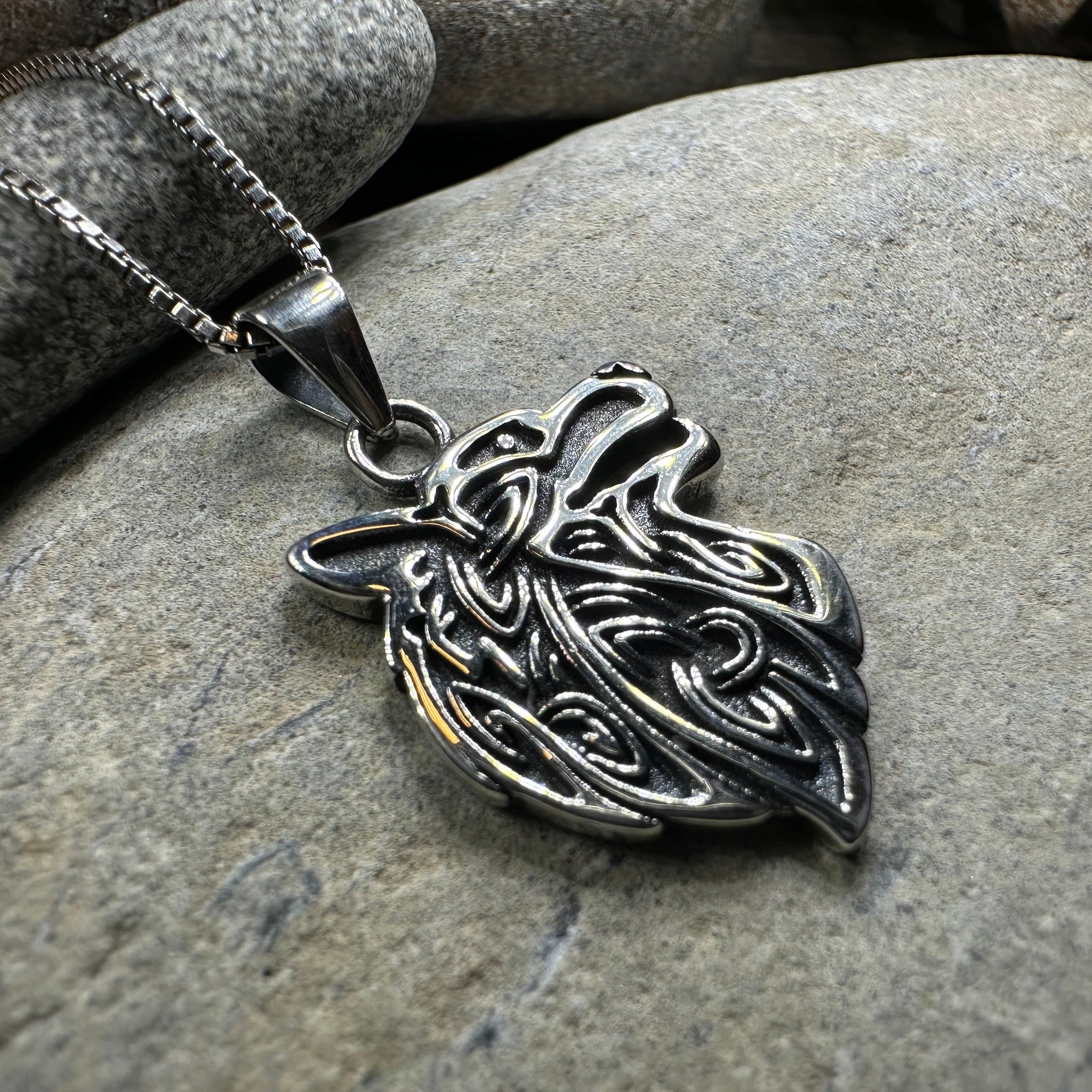 Wear this petite Celtic Wolf Necklace for a look that stands out from the pack. Crafted from pure sterling silver, this detailed design features an intricate wolf head with classic Celtic knotwork.
