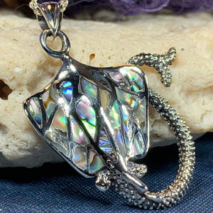 Solid Sterling Silver Abalone Manta Ray Pendant with natural abalone or mother of pearl shell inlay