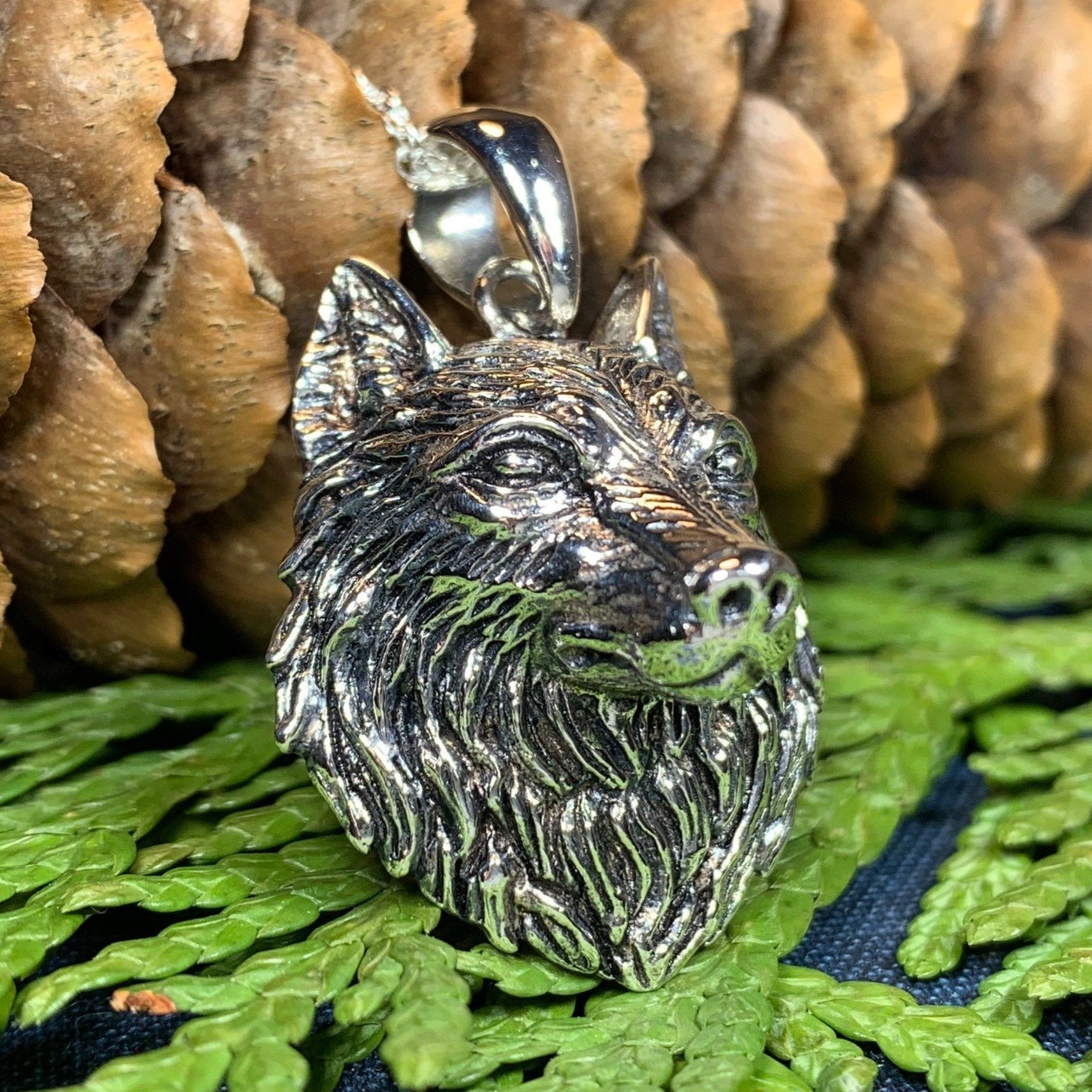 The detail of the wolf's head is incredible - you can see each detail of his fur! - a beautiful work of art! Pure sterling silver. Hallmarked 925.