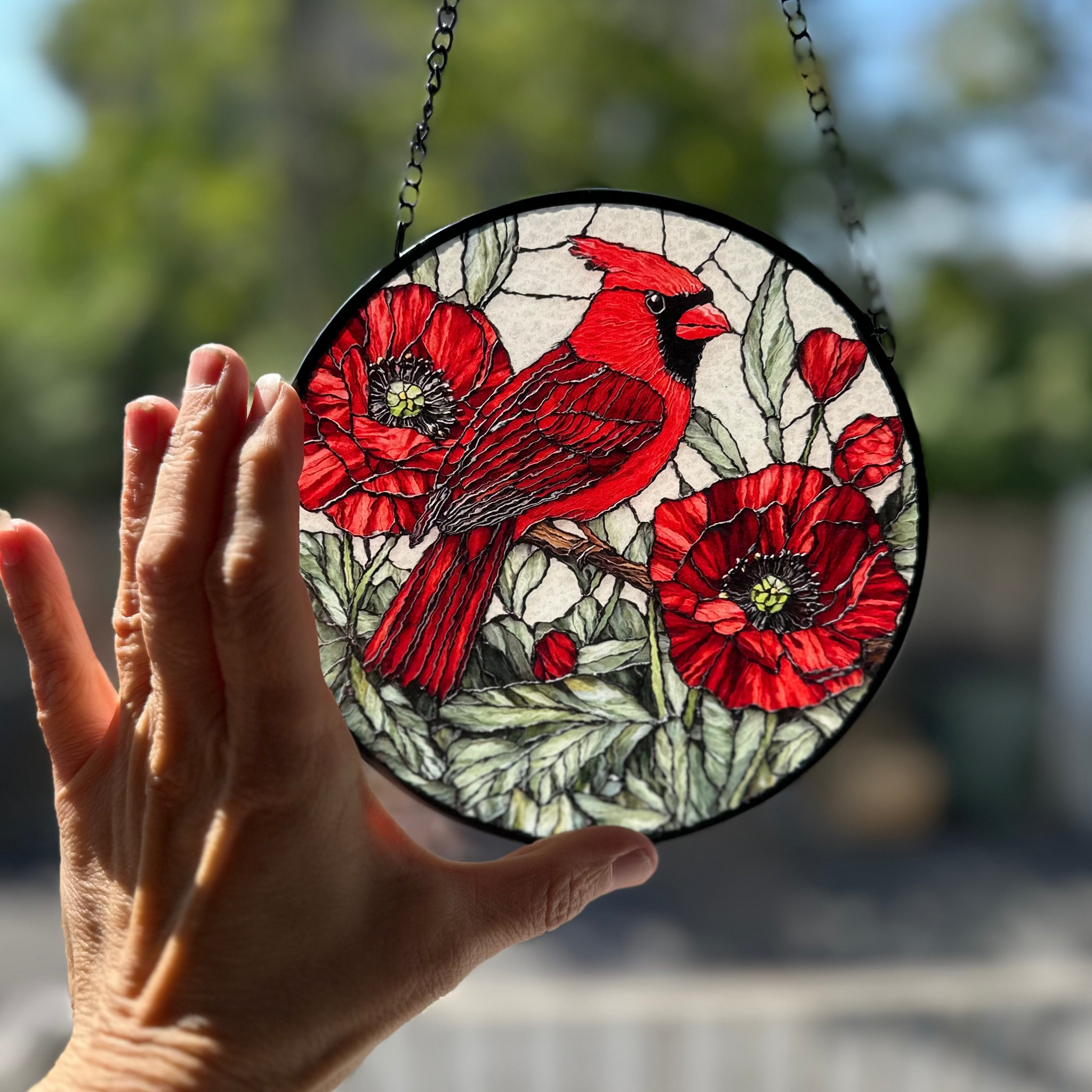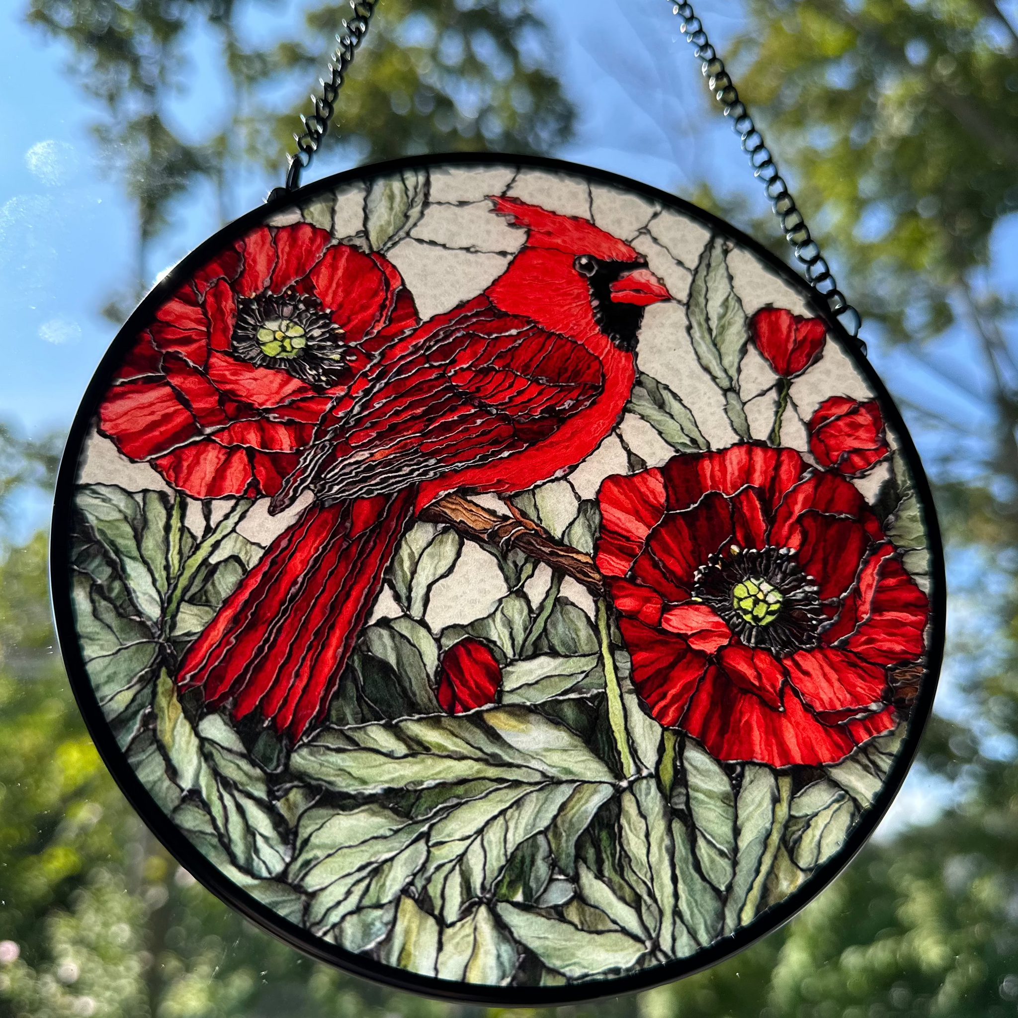 This Always Remember Cardinal window art glows in beautiful colors. With vibrant colors and - a perfect and colorful scene that will bring you joy every time you see it!