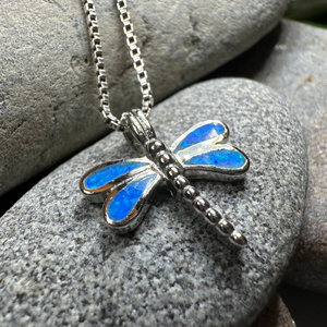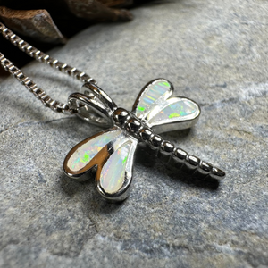 This beautiful petite Dragonfly necklace has the lovely glow of inlaid lab created fire opal with a solid sterling silver setting - the inlaid opal in its wings to create an eye-catching design for your loved one!