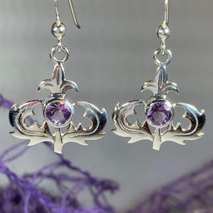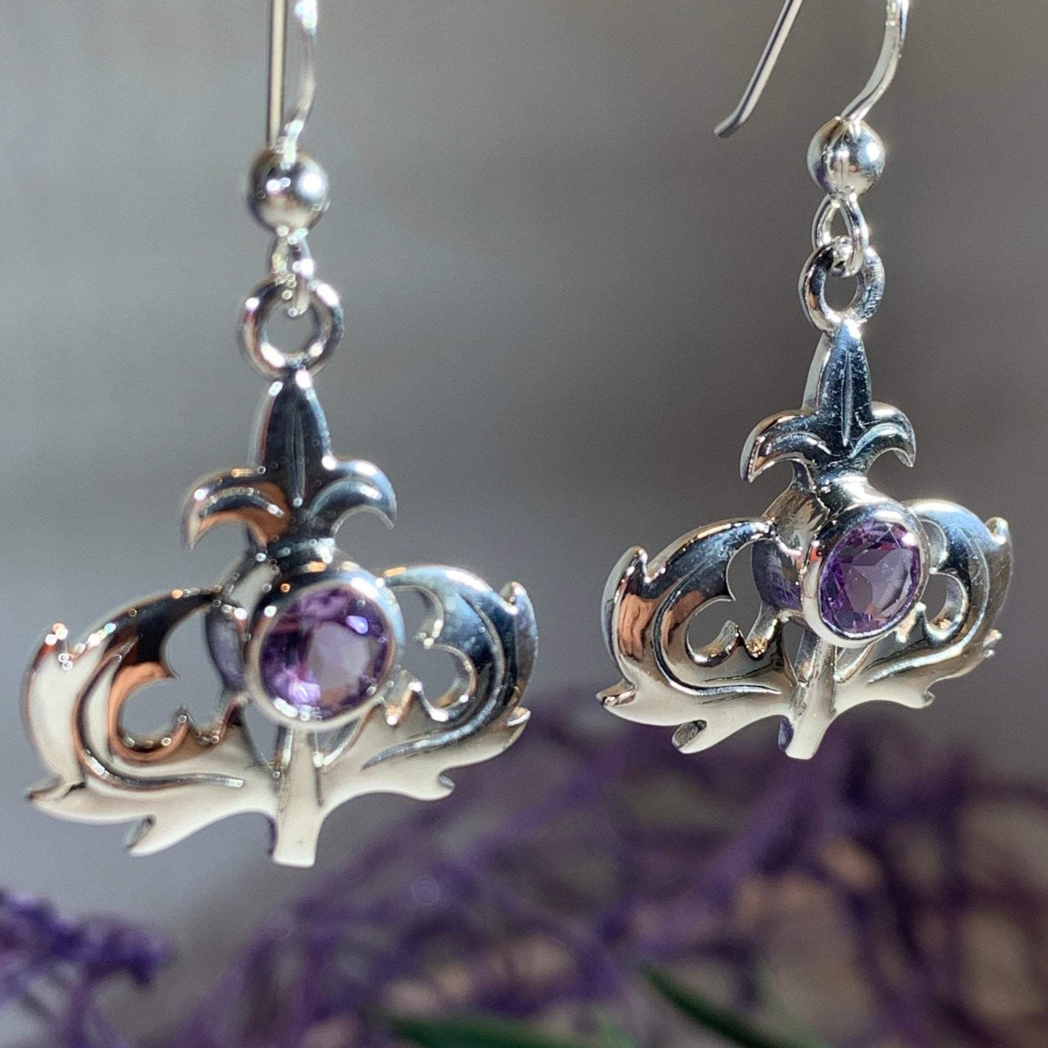 Throughout Celtic regions, thistle represents bravery, devotion, durability, strength, and determination celebrated in this sterling silver hook earrings. The Scottish Thistle is a resilient symbol which has always bloomed across Scotland's landscape.