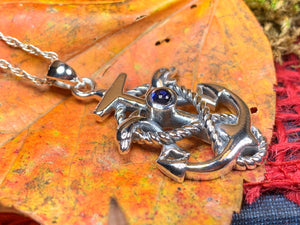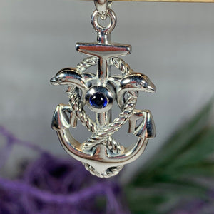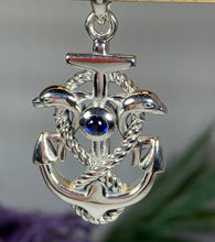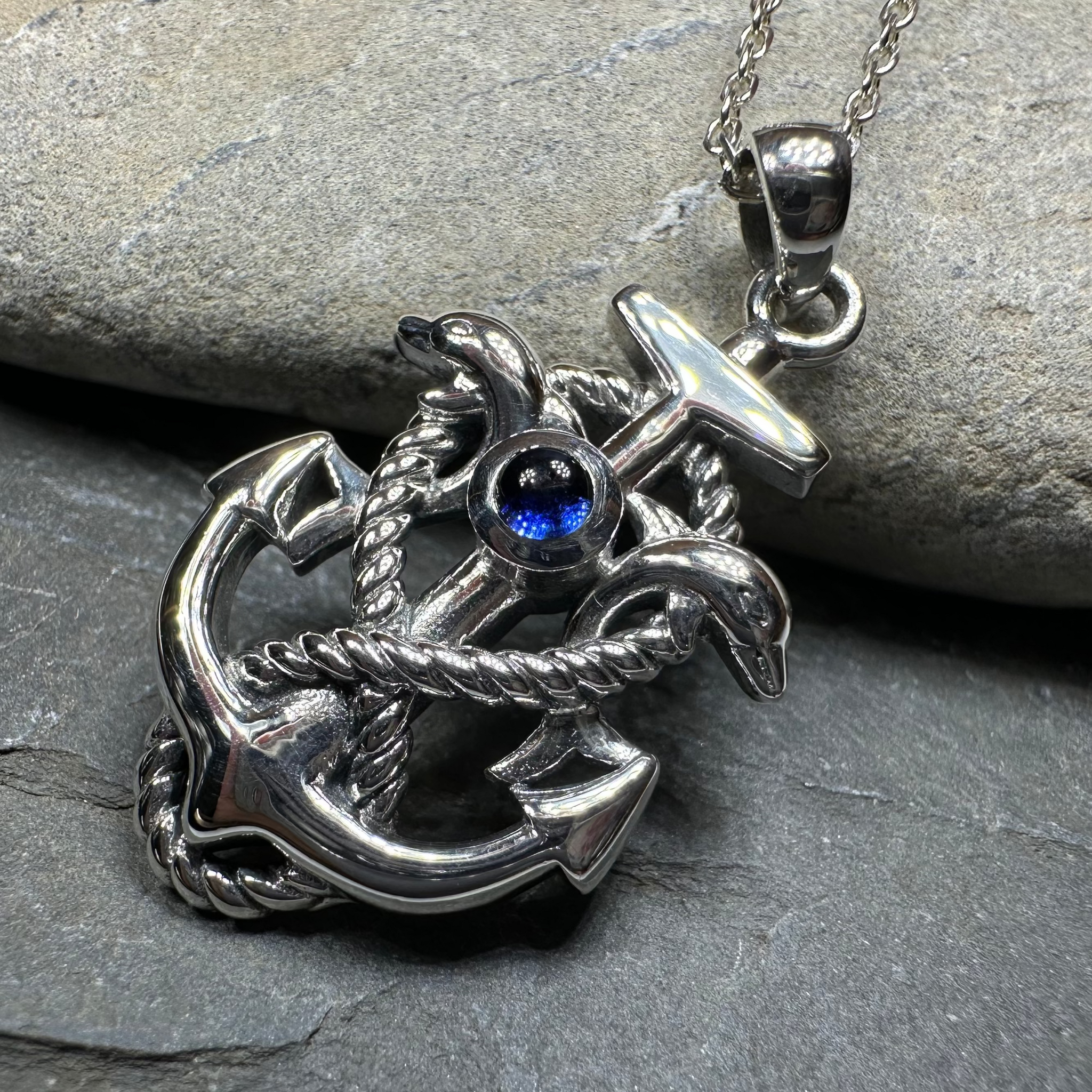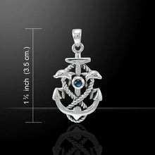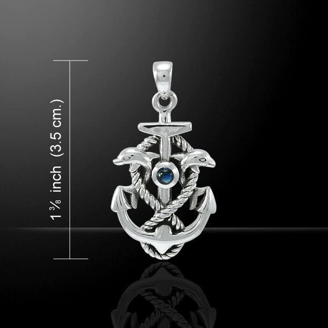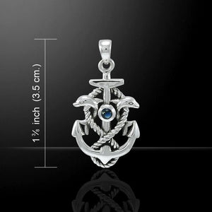 This 1" long anchor has amazing detail - you can see every line on the rope that is wrapped around the anchor and two dolphins - a beautiful sapphire accent in deep blue.
