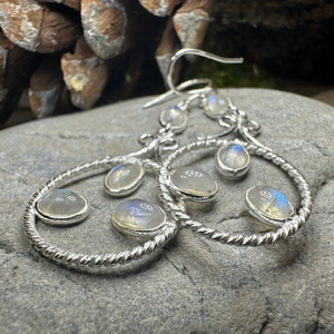Beautiful Ancient Celtic earrings- the frosty color of these stones is soft and beautiful - with four lovely natural red garnet or green chalcedony or rainbow moonstone oval shaped stones set in each earring (Grade AAA stone).