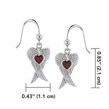 3/4" x 1/2" in solid sterling silver with faceted, heart shaped garnet or amethyst stone.