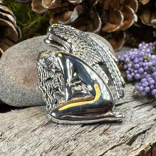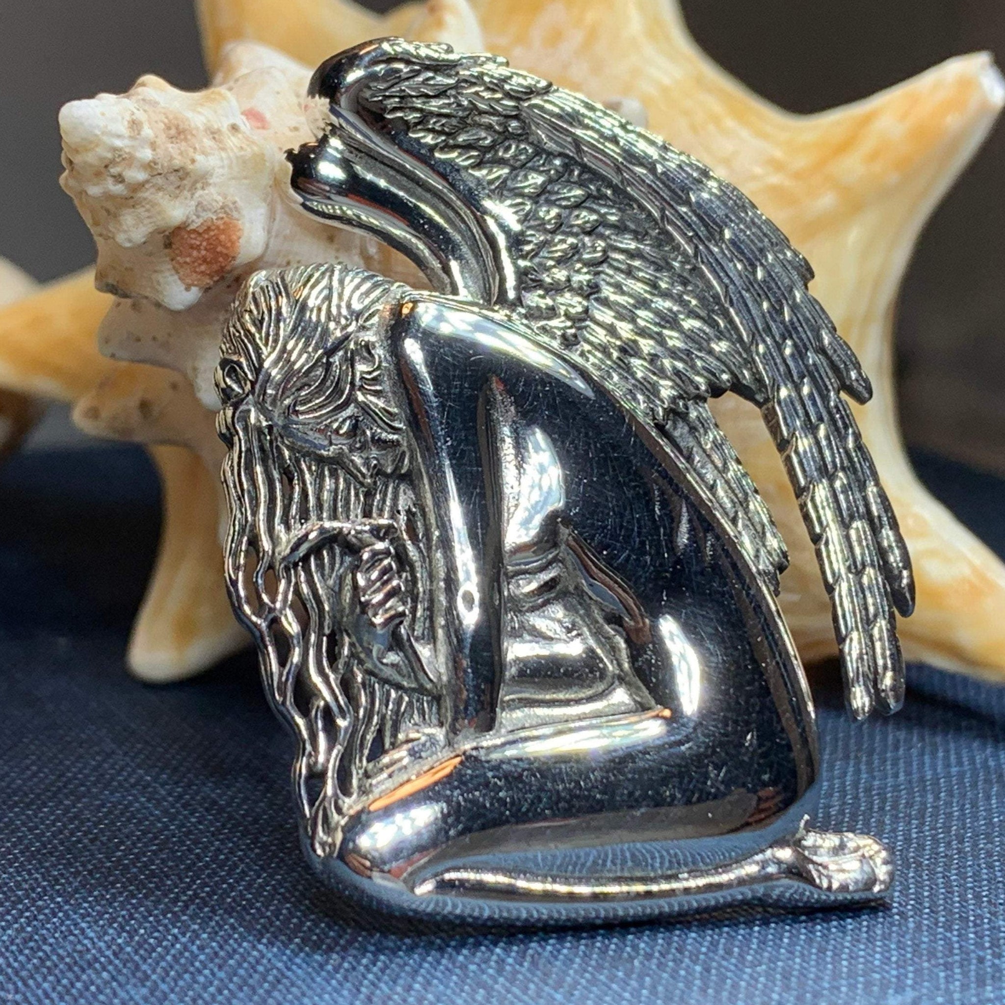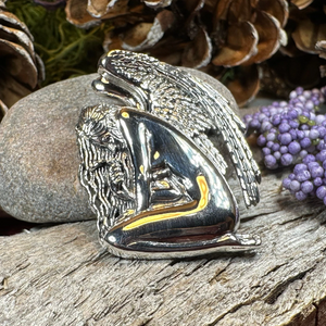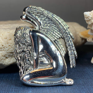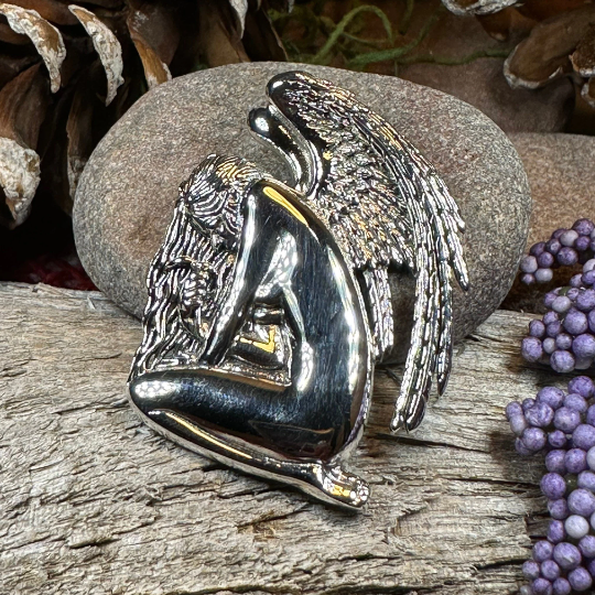 Do you yearn for peace? This guardian angel holds a flower in her hand with her beautifully detailed wings outstretched, kneeling and watching over the world below. She is surrounded by her flowing hair and dreams of love - the detail is amazing!