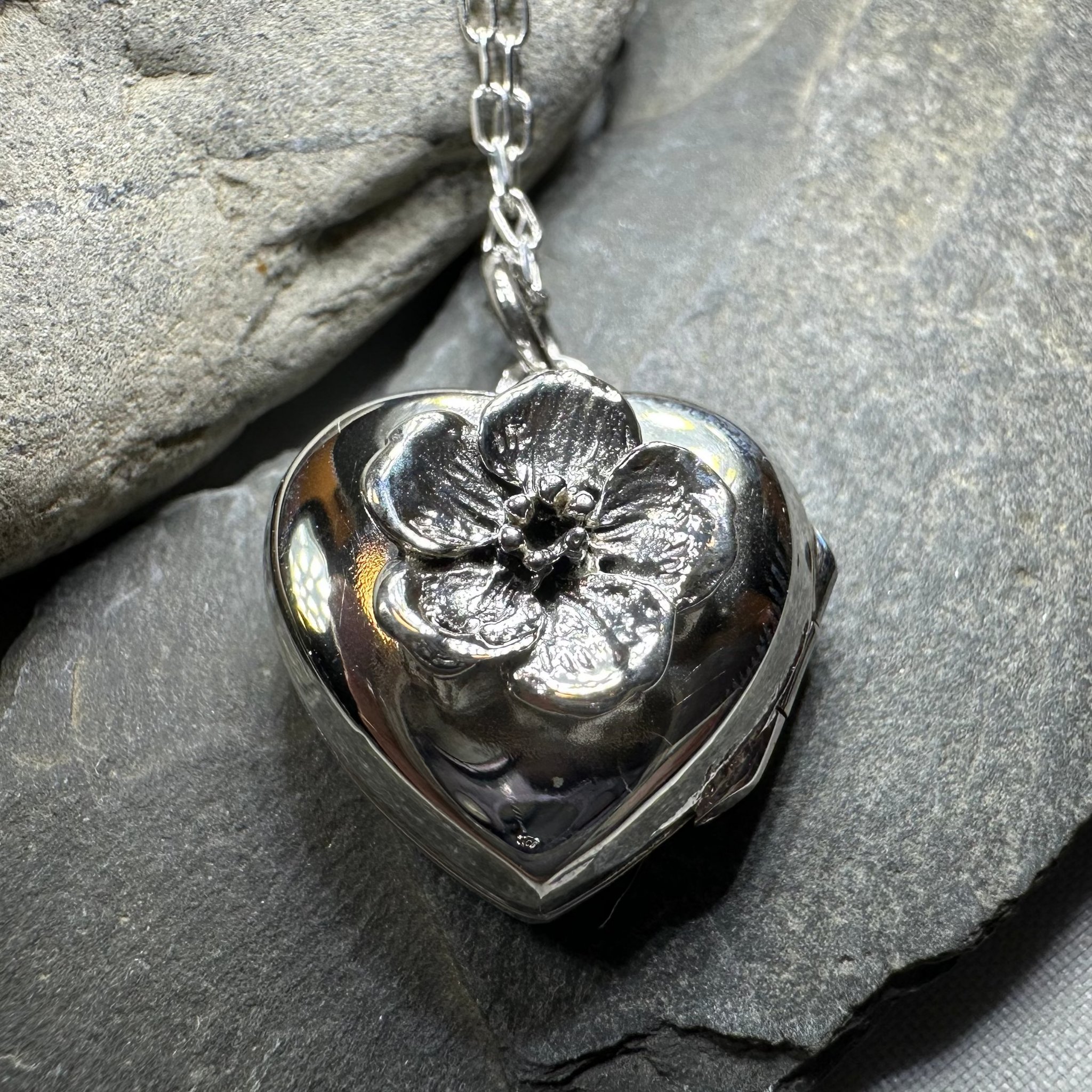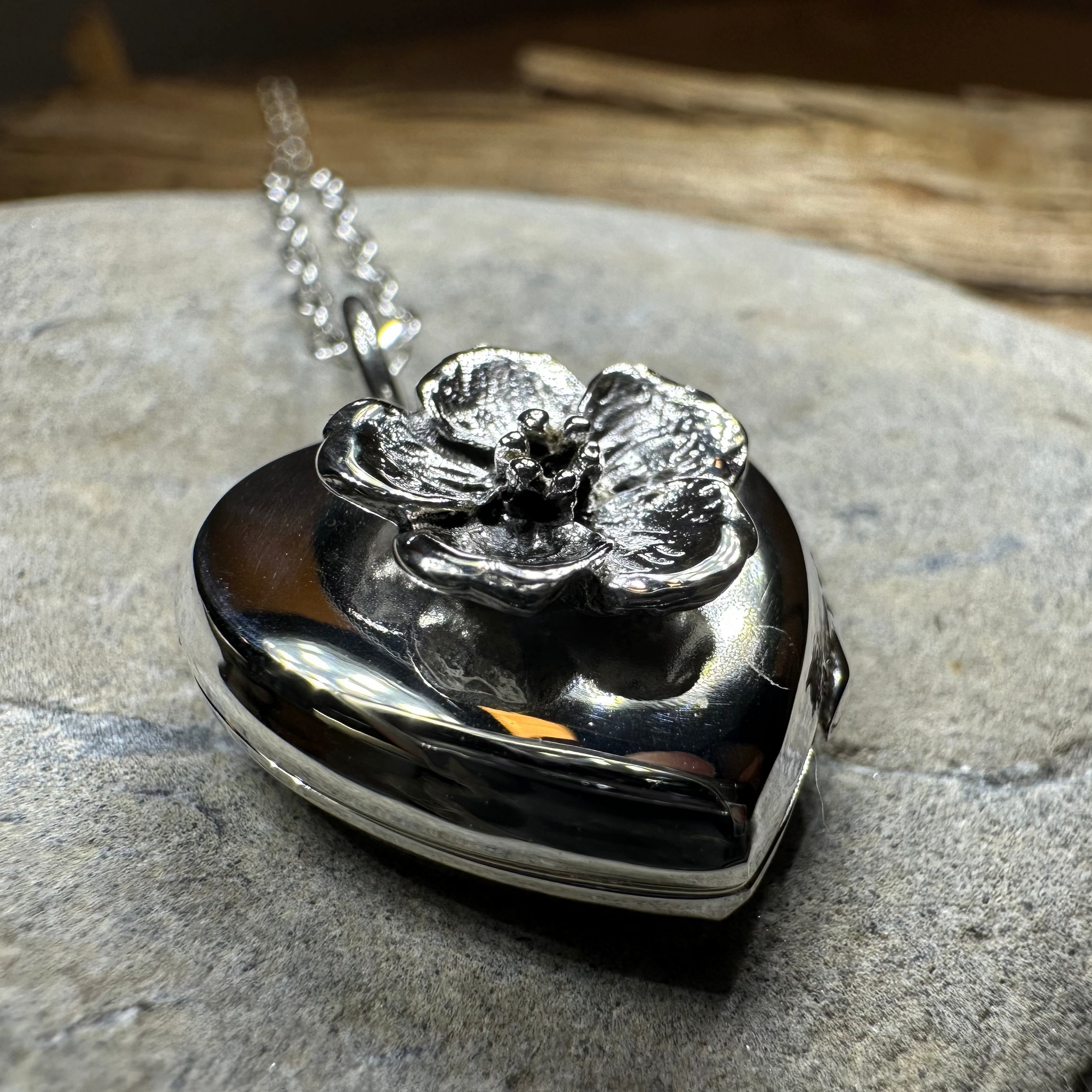 The intricate design of lovely blooming dogwood blossom will leave you speechless. This locket features a delicate, detailed blooming flower that will open up to hold a cherished photo or memory.