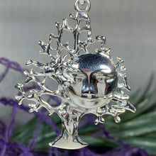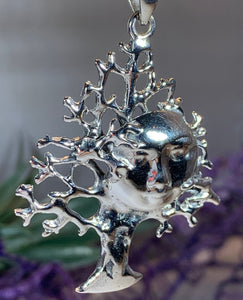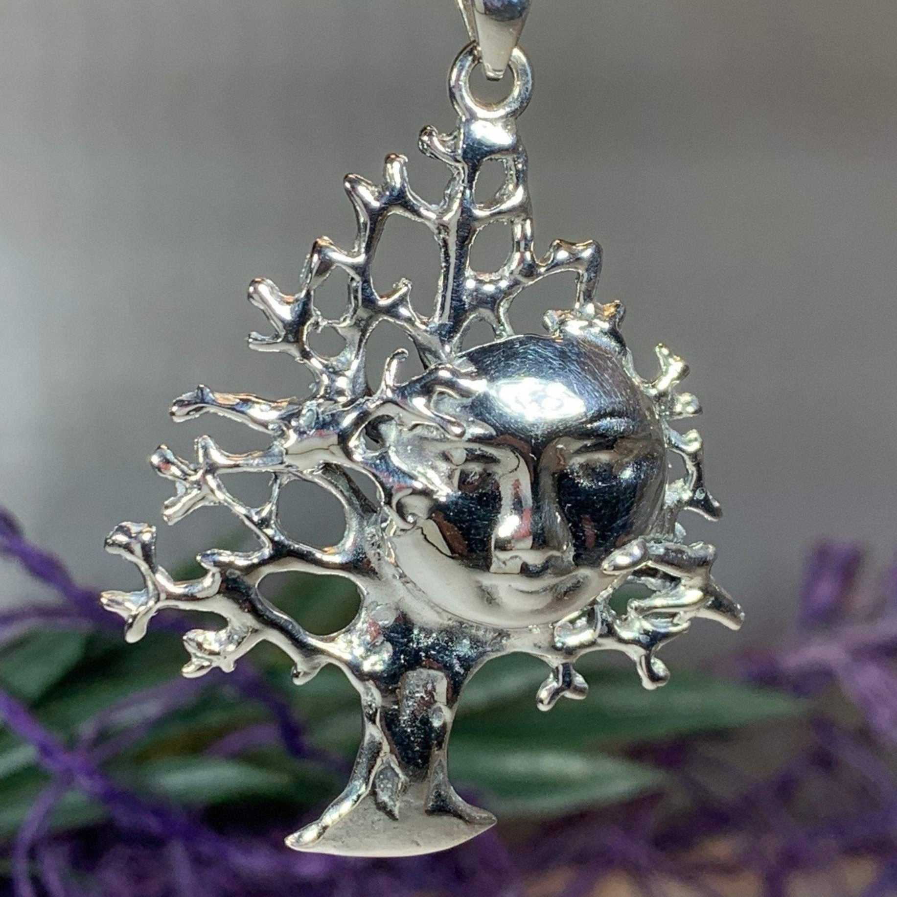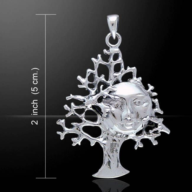 Expertly crafted from solid sterling silver, the 1 1/2" x 1 1/2" Annea Tree of Life necklace features a stunning pendant that captures the beauty of a full moon peeking through winter tree branches.
