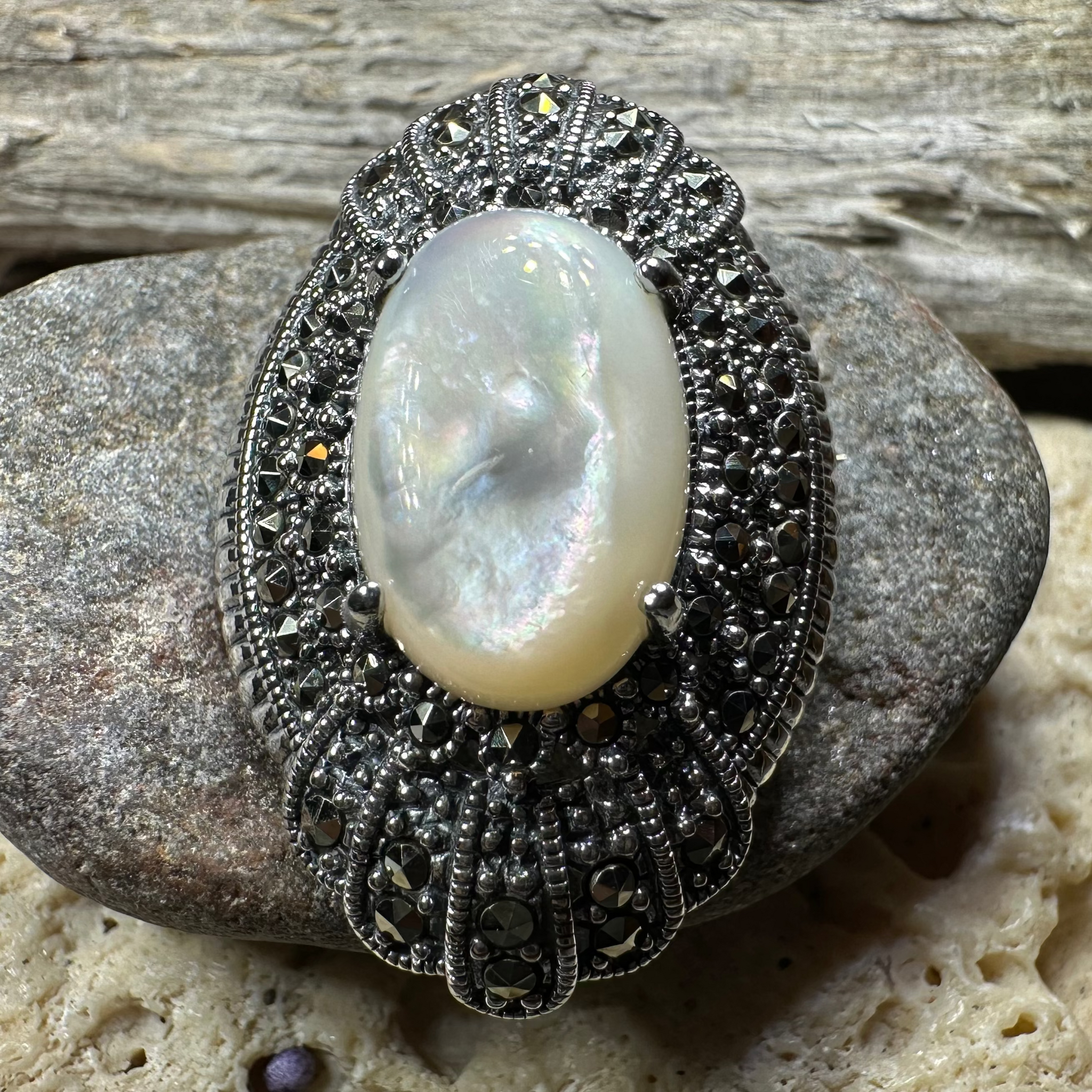 The elegant marcasite gemstones bring out the beautiful lines of the Celtic knotwork. A beautiful pin that will get attention and become your favorite go-to piece for a rich Celtic look!