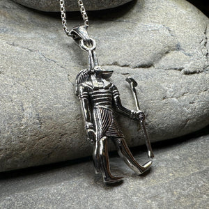 This sterling silver pendant honors Anubis, the ancient Egyptian god dealing with matters of death, protecting tombs, weighing souls, and guiding them to the afterlife.