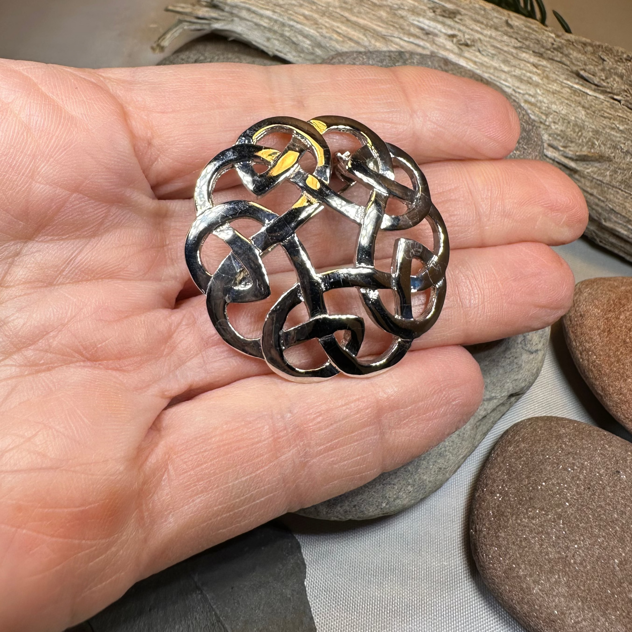 This brooch uses Celtic interlacing to form a strong but intricate woven Celtic knot.
