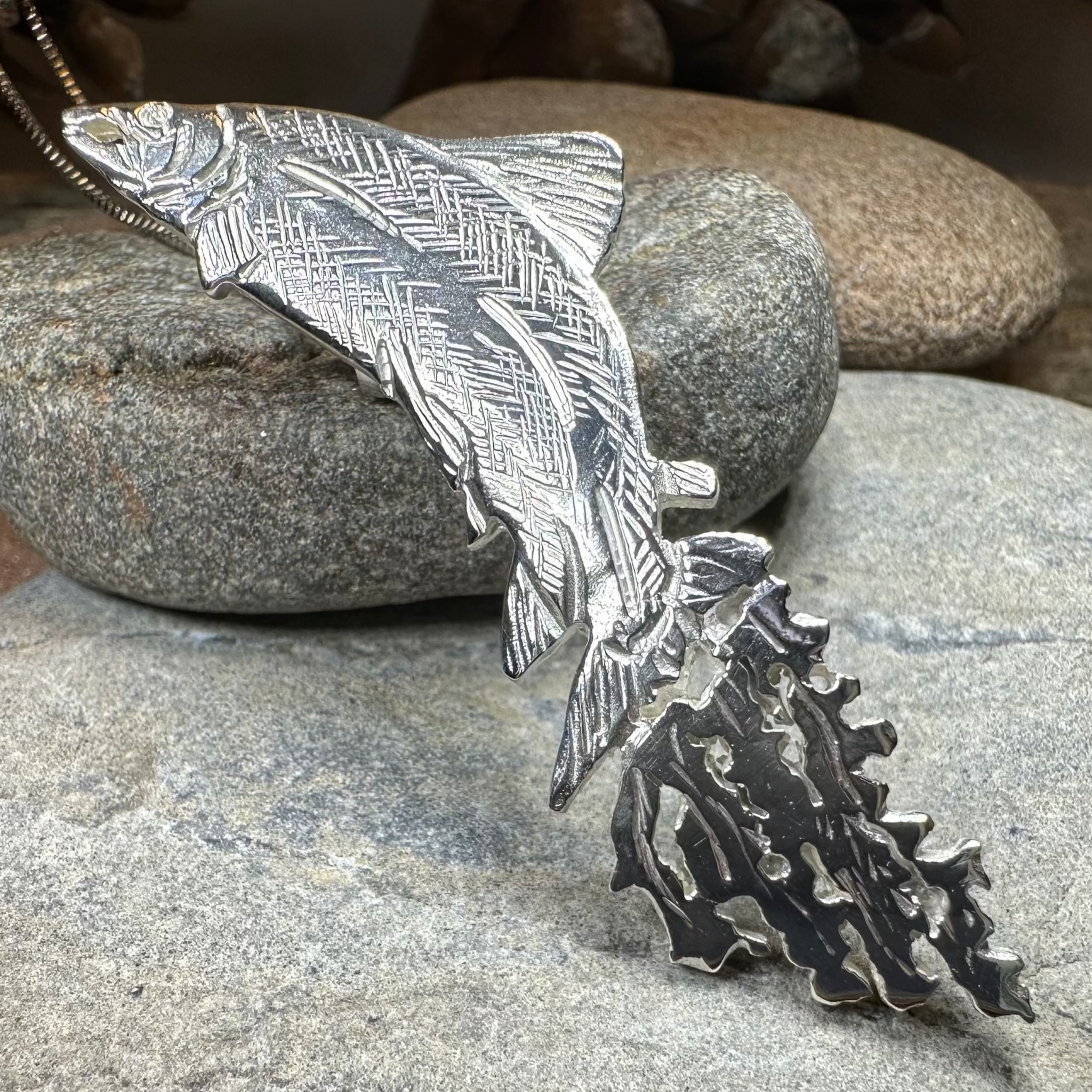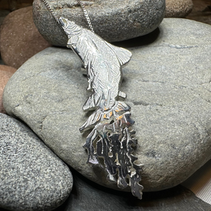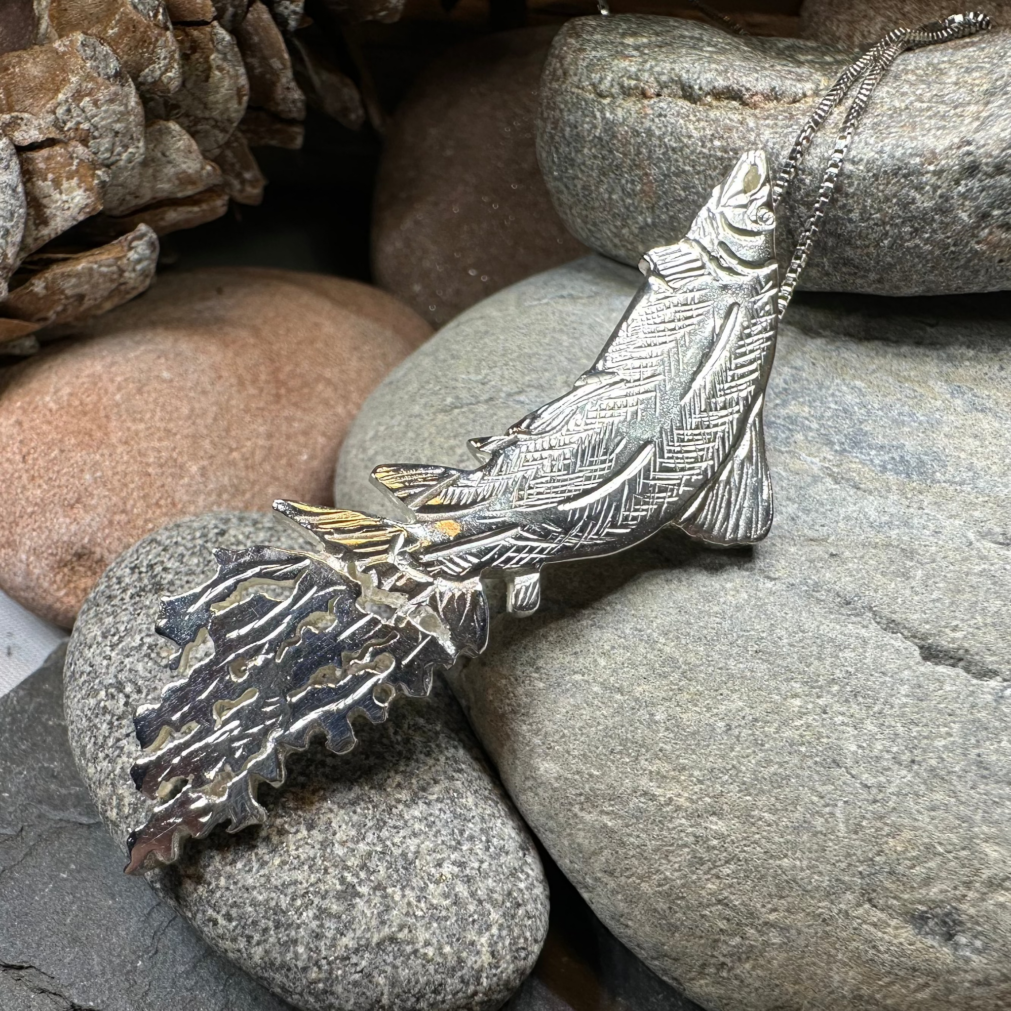 Solid Sterling Silver realistic Salmon of Knowledge necklace is handmade in Dublin, Ireland.