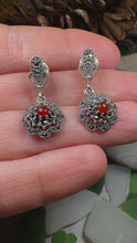 Solid Sterling Silver Serene Marcasite Flower Dangle Earrings with post back.