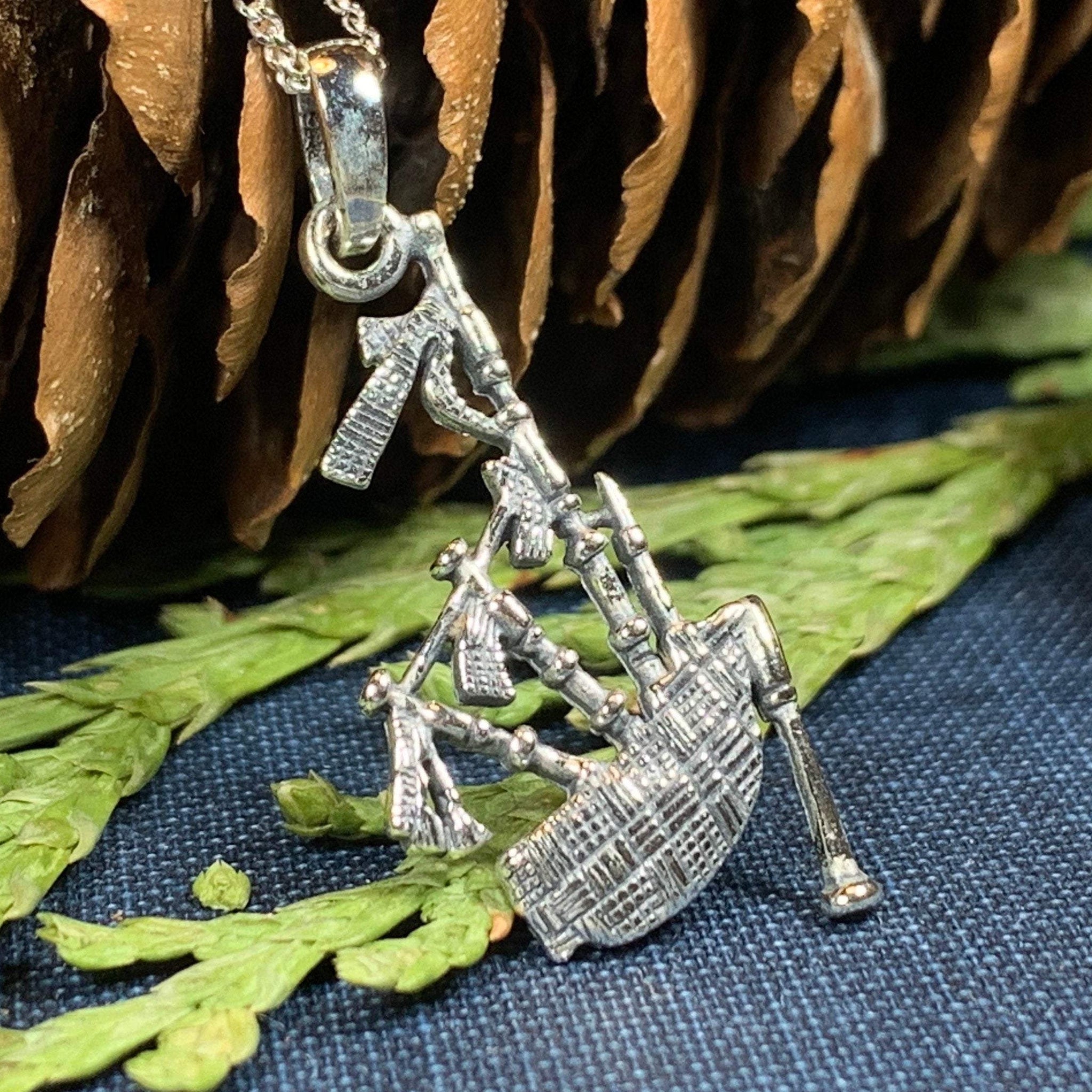 If you love the bagpipes, you will love this necklace. Every detail of this mighty instrument has been picked out in solid sterling silver - you can even see the detail on each tiny pipe!