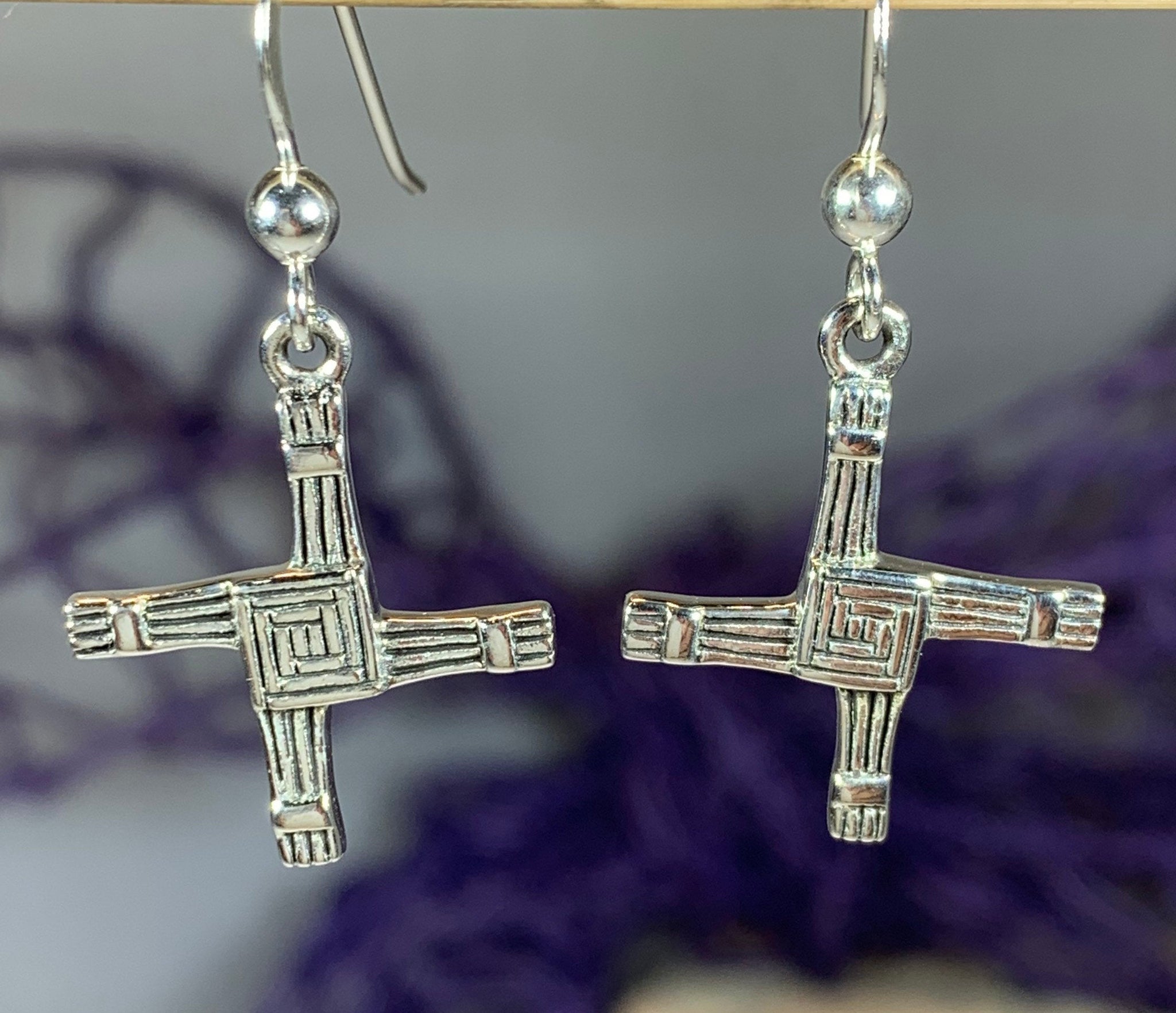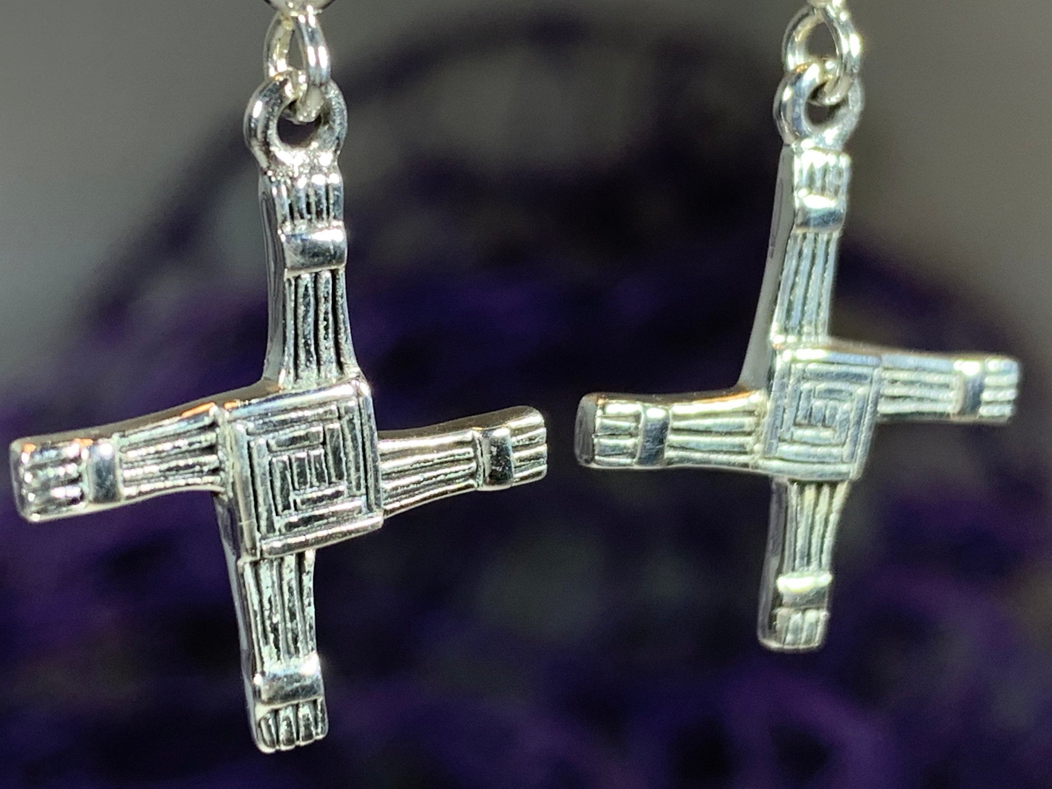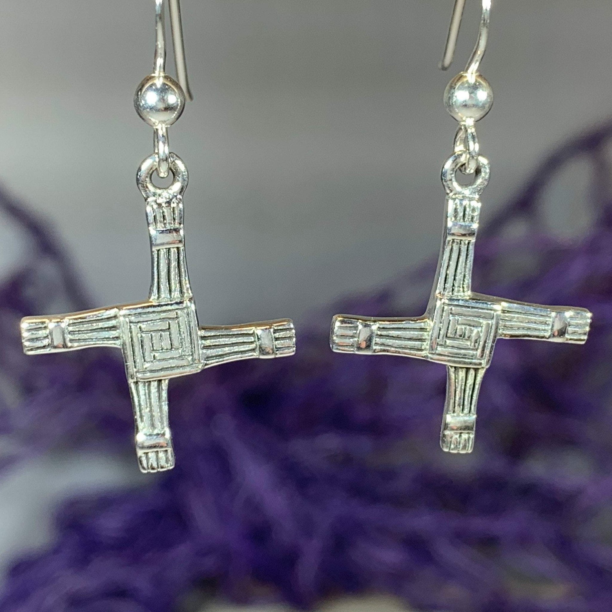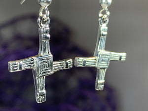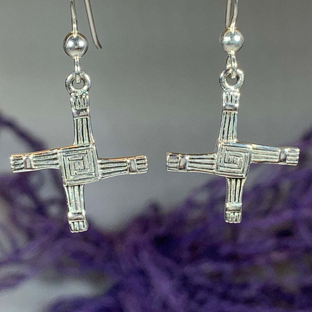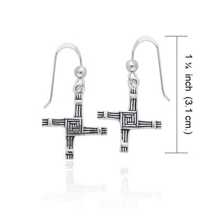 Each earring showcases the distinctive woven pattern of St. Bridget's cross, symbolizing protection and blessing. The refined sterling silver construction ensures both elegance and longevity, making these earrings a sophisticated addition to any jewelry collection.