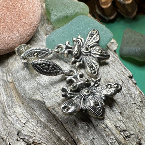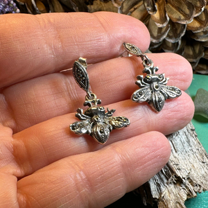 These earrings are a work of art! Glittering marcasite set into sterling silver in the shape of an elegant bee - on the back highly polished sterling silver shines like a mirror.