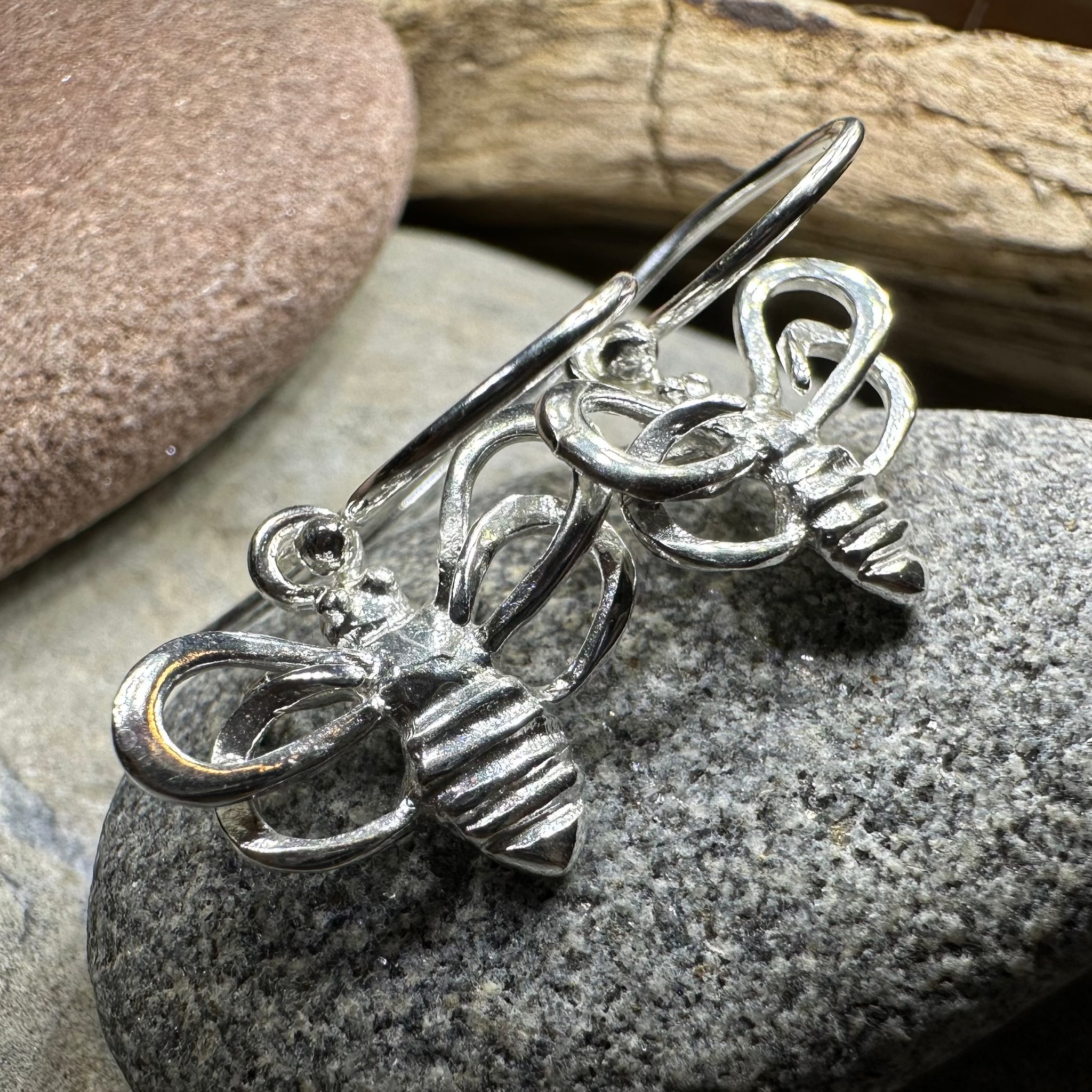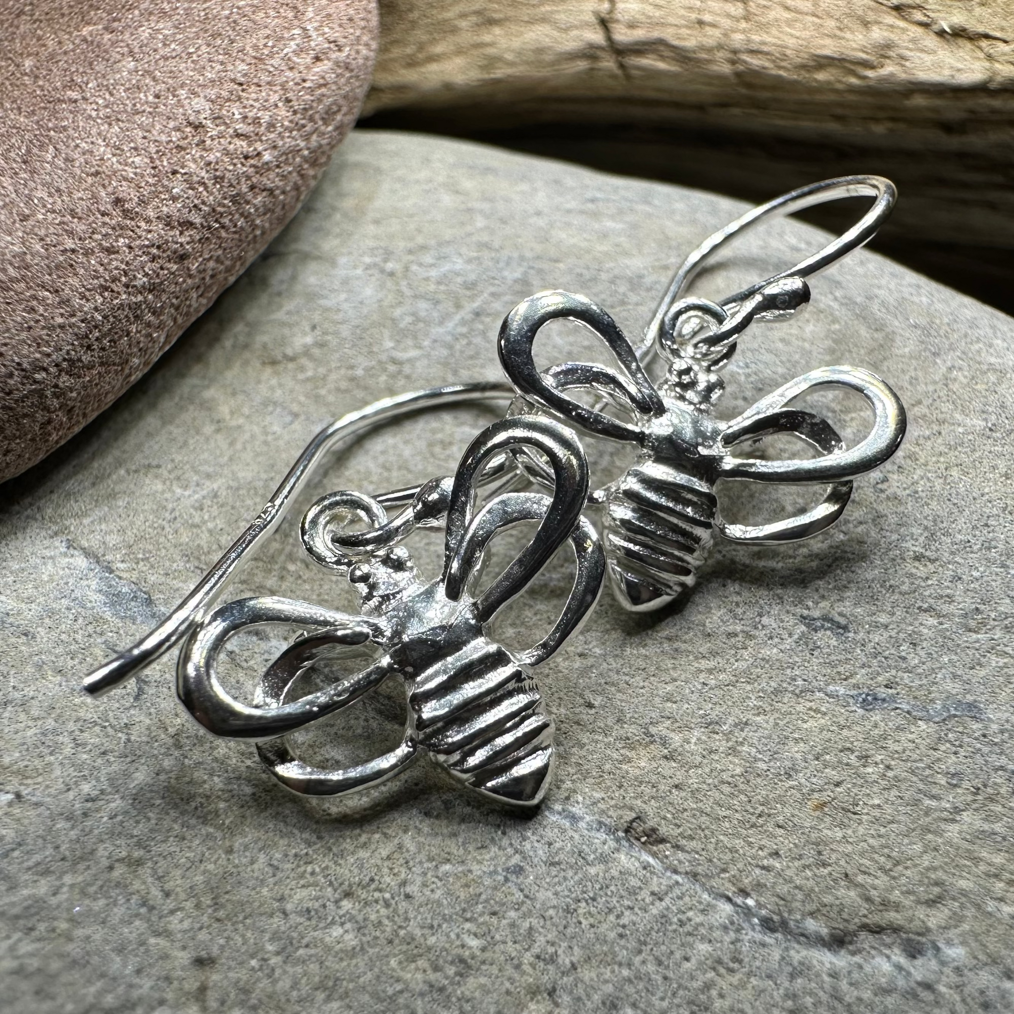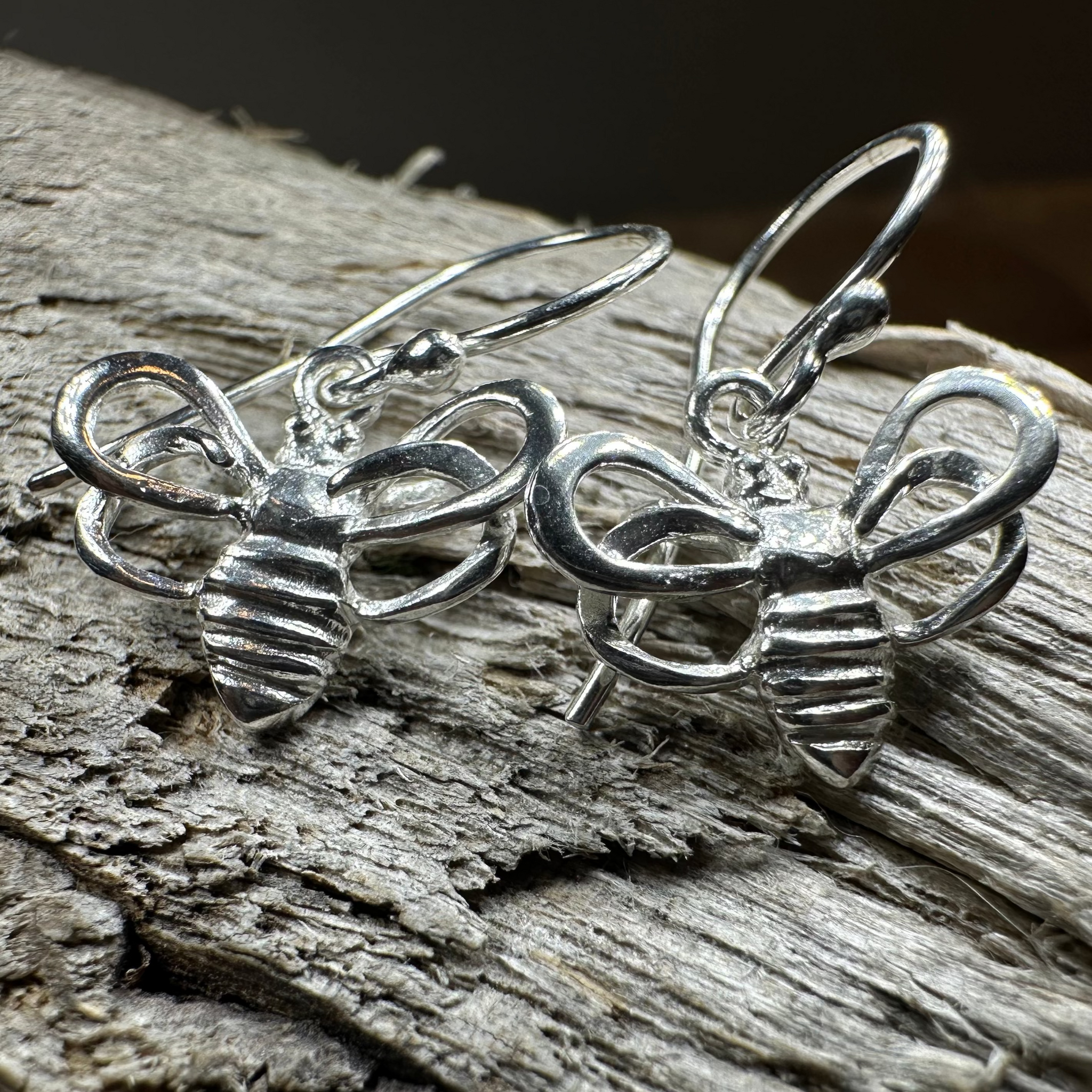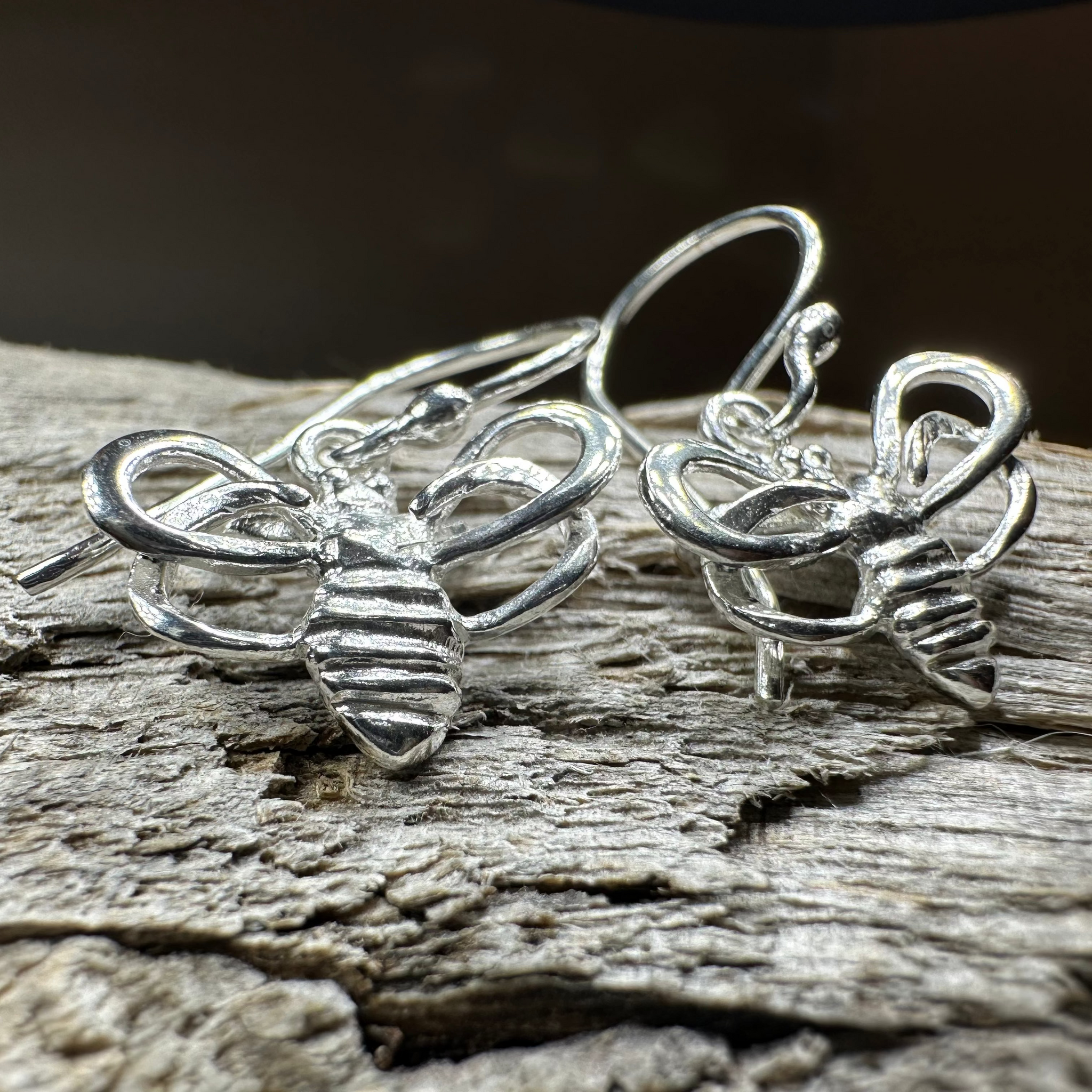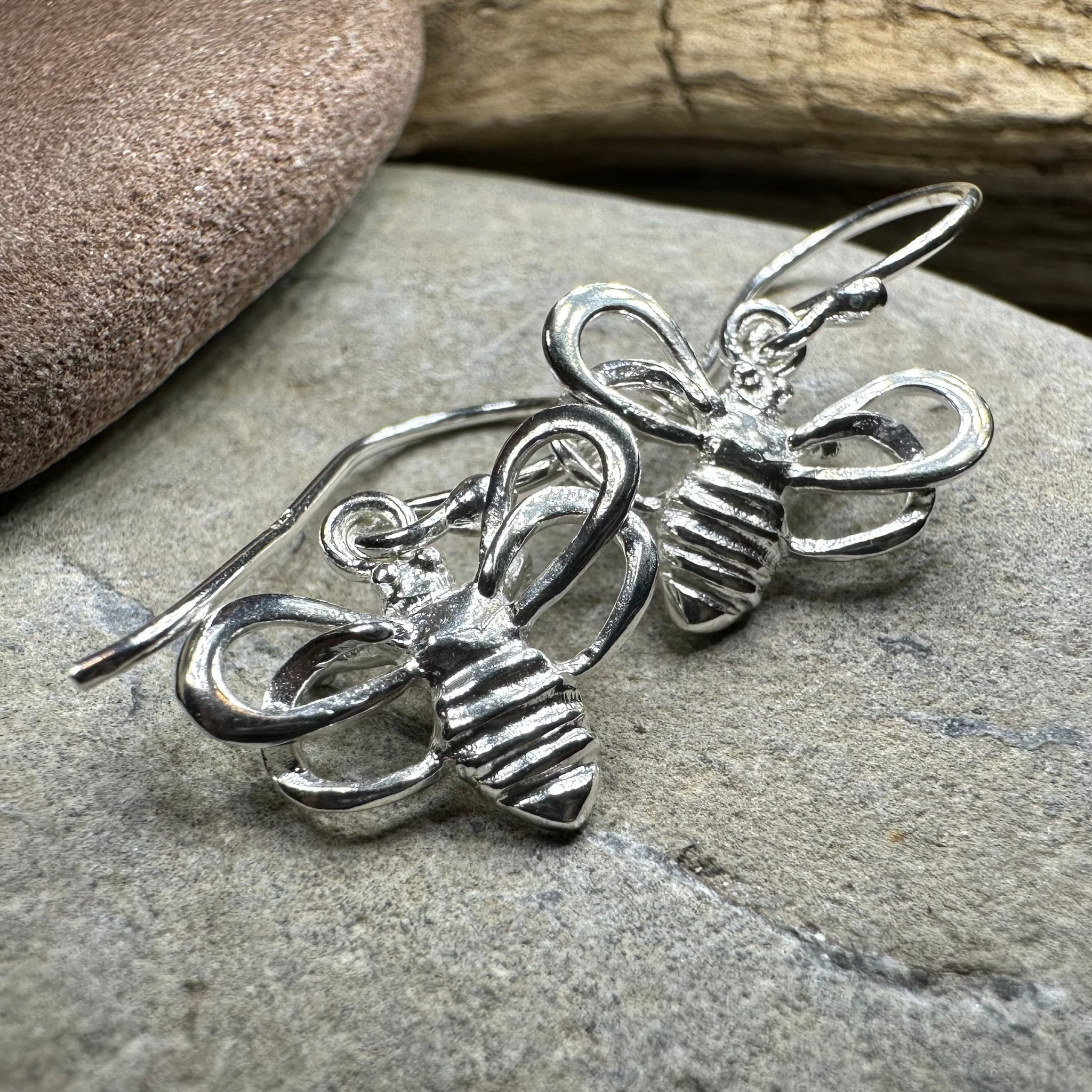 These earrings are a work of art! Playful sterling silver bees with little wings and a beautiful shine.