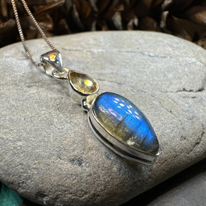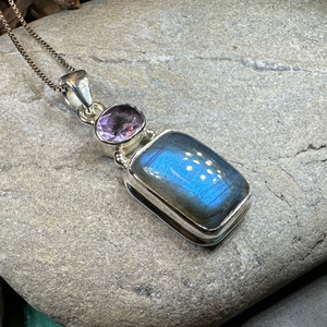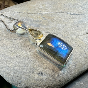This Solid Sterling Silver Labradorite and authentic gemstone pendant creates a combinate of color and amazing flash! Made carefully by hand to create a perfect balance.