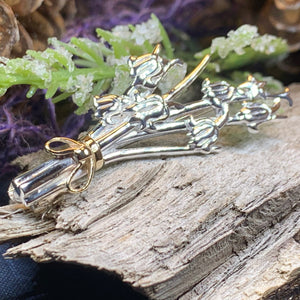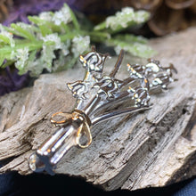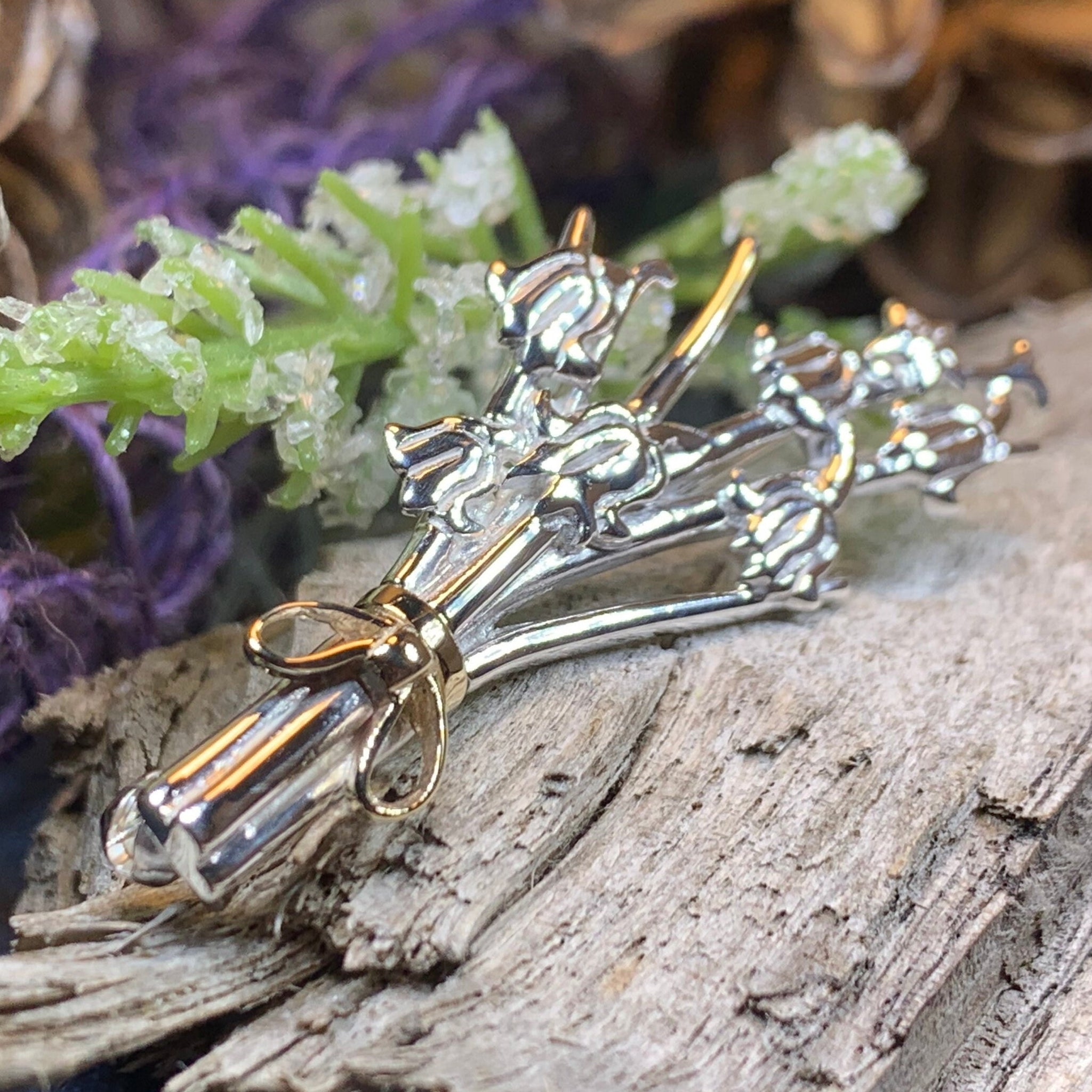 Deep in the woods of Scotland & Ireland the spring brings the blooming of the bluebells. Wear this great Celtic Bluebells brooch to celebrate the beauty of these Celtic countries... Whenever you wear it you will carry the beauty of the bluebells with you! A little sterling silver posey of bluebells wrapped up in an 18K gold bow. A real work of art that will become a family heirloom!