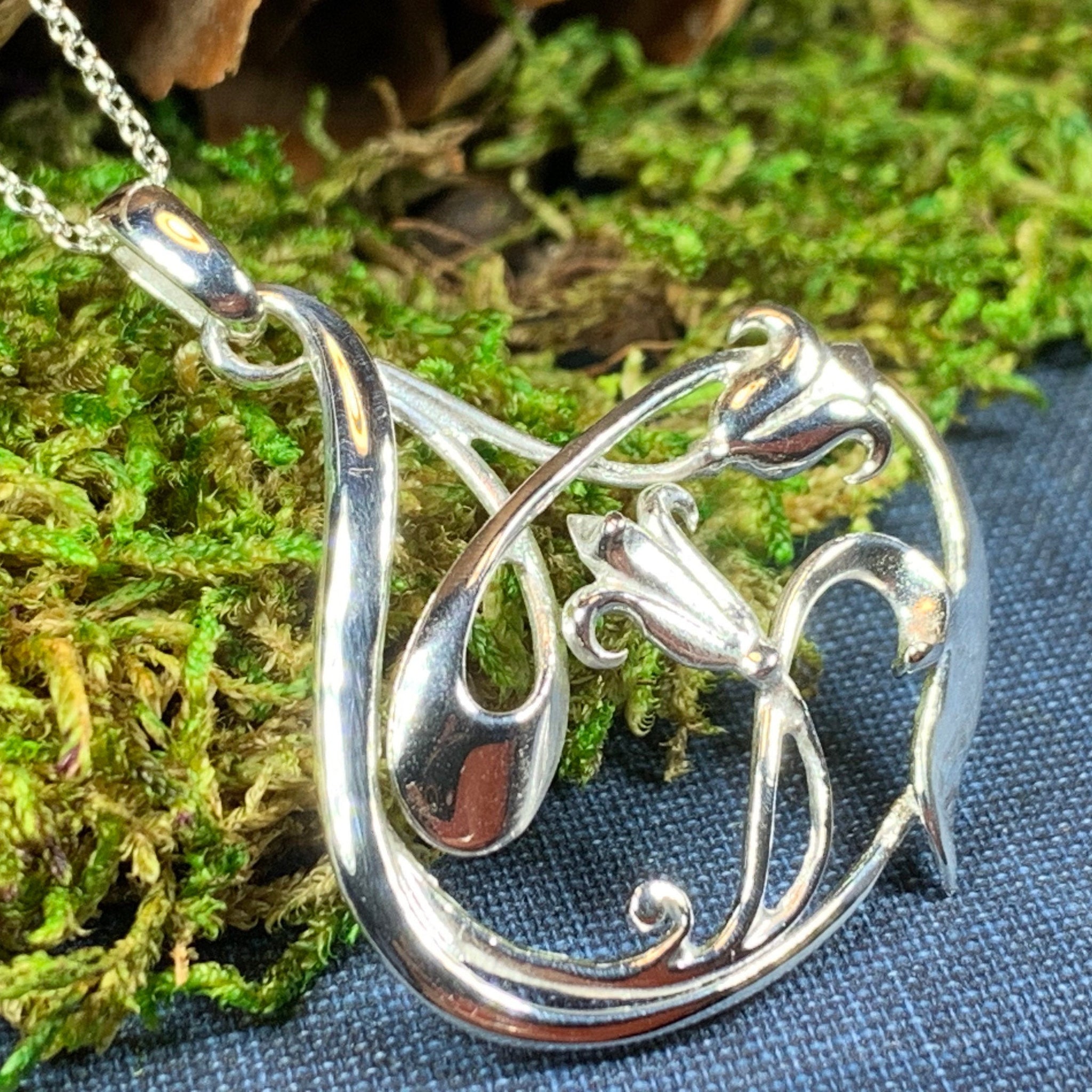 Solid Sterling Silver Scottish Bluebell Pendant on an 18" chain.