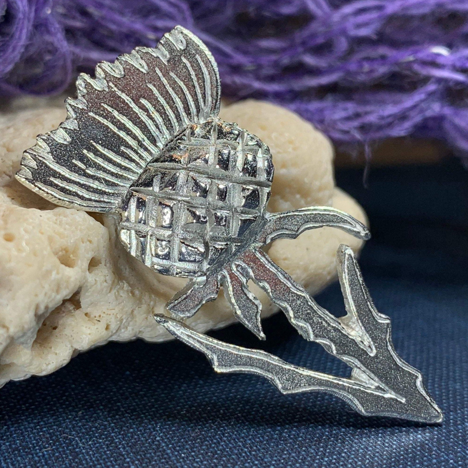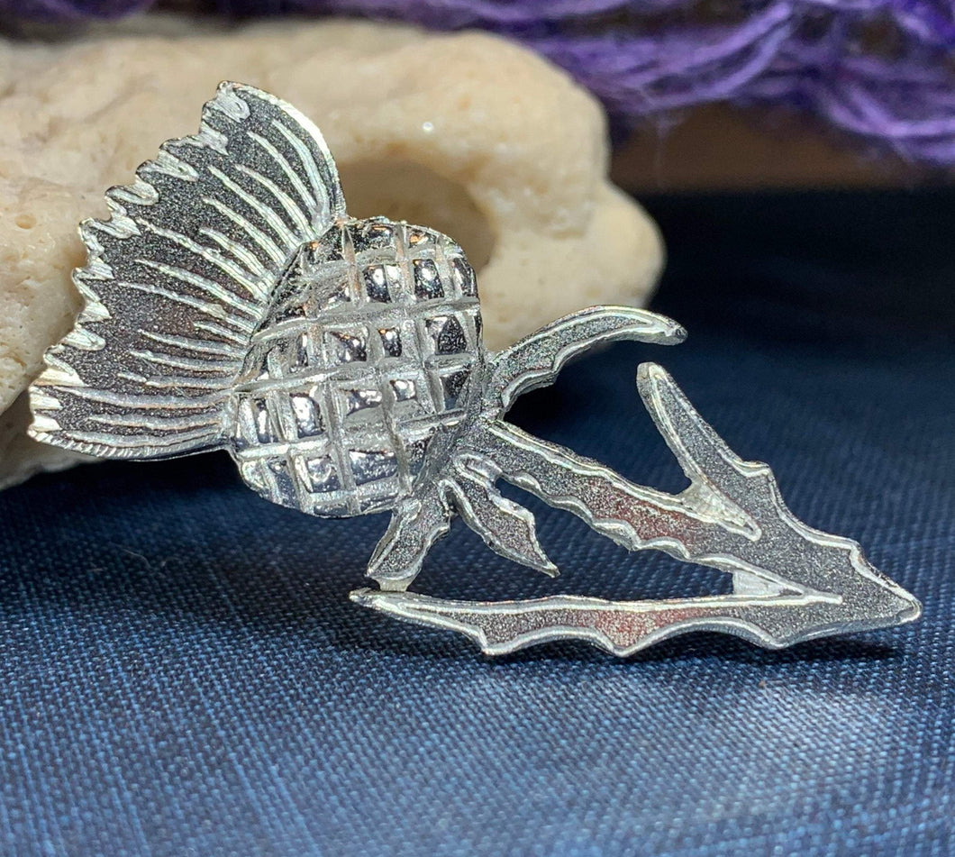 This beautiful brooch honors the sacred place of the thistle in Celtic traditions. The Scottish thistle became a national symbol, with the motto "What dares meddle with me?"