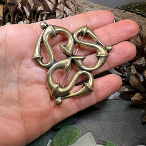 Dimensions of the Roman Triquetral-Fibula: 2" x 2" in size. Clip back pin is soldered to the focal piece, NOT glued to assure sturdy construction.