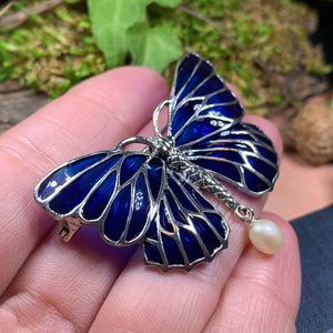 This sterling silver pin incorporates the majestic beauty of the butterfly with a creative use of gemstones. The open design at the back allows light to come through the back of the pin and "light up" or highligh the colors of the butterfly's wings.