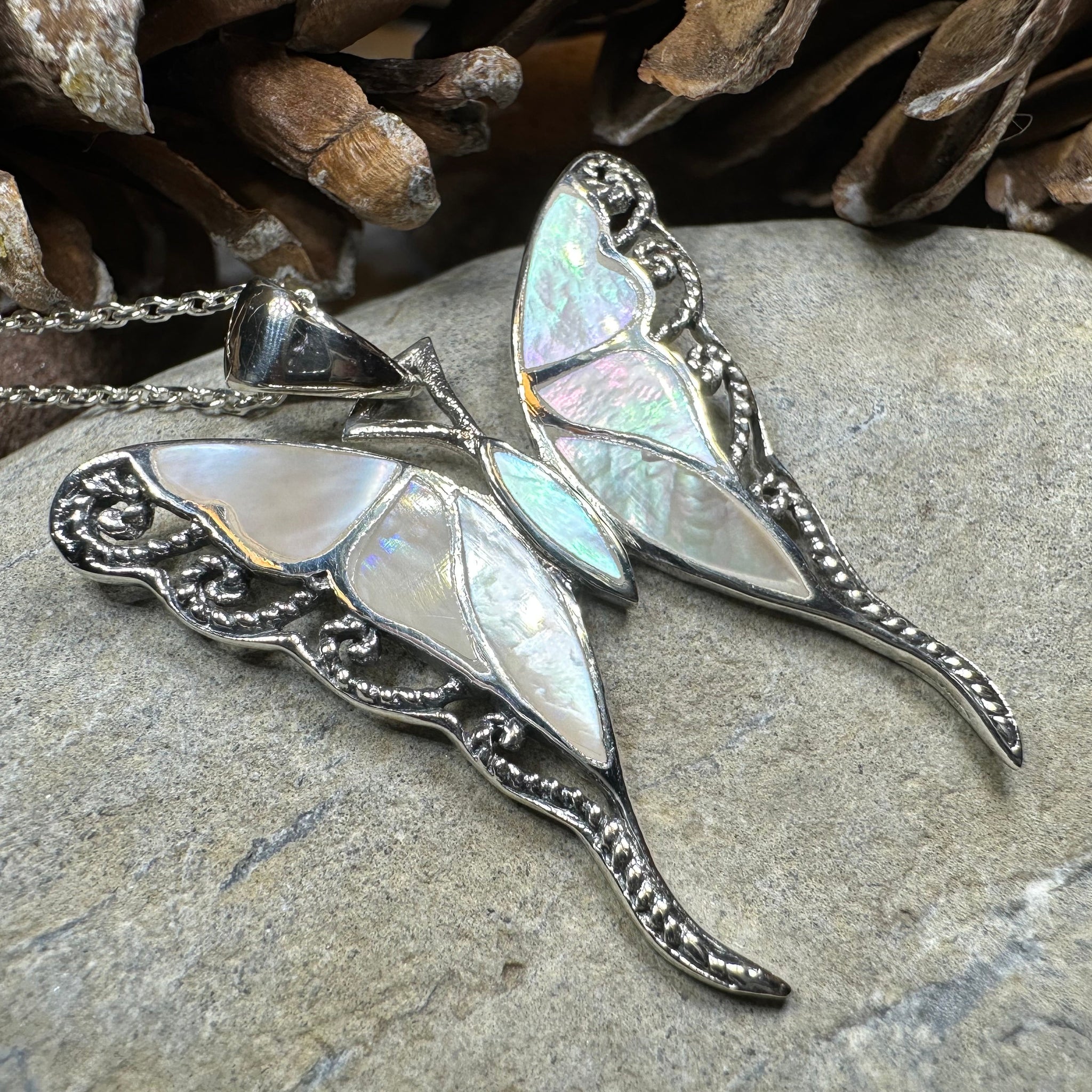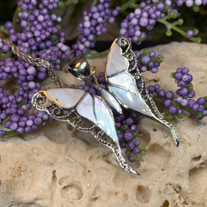 Solid Sterling Silver and natural shell -- Butterflies are delicate creatures, that can teach people a lot about grace, beauty, and transformation.