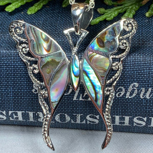 The Whitney Butterfly Necklace, crafted from pure silver and natural mother of pearl, symbolizes transformation and hope. This elegant piece reflects change, endurance, and new beginnings, making it a graceful reminder of life’s journeys and resilience.