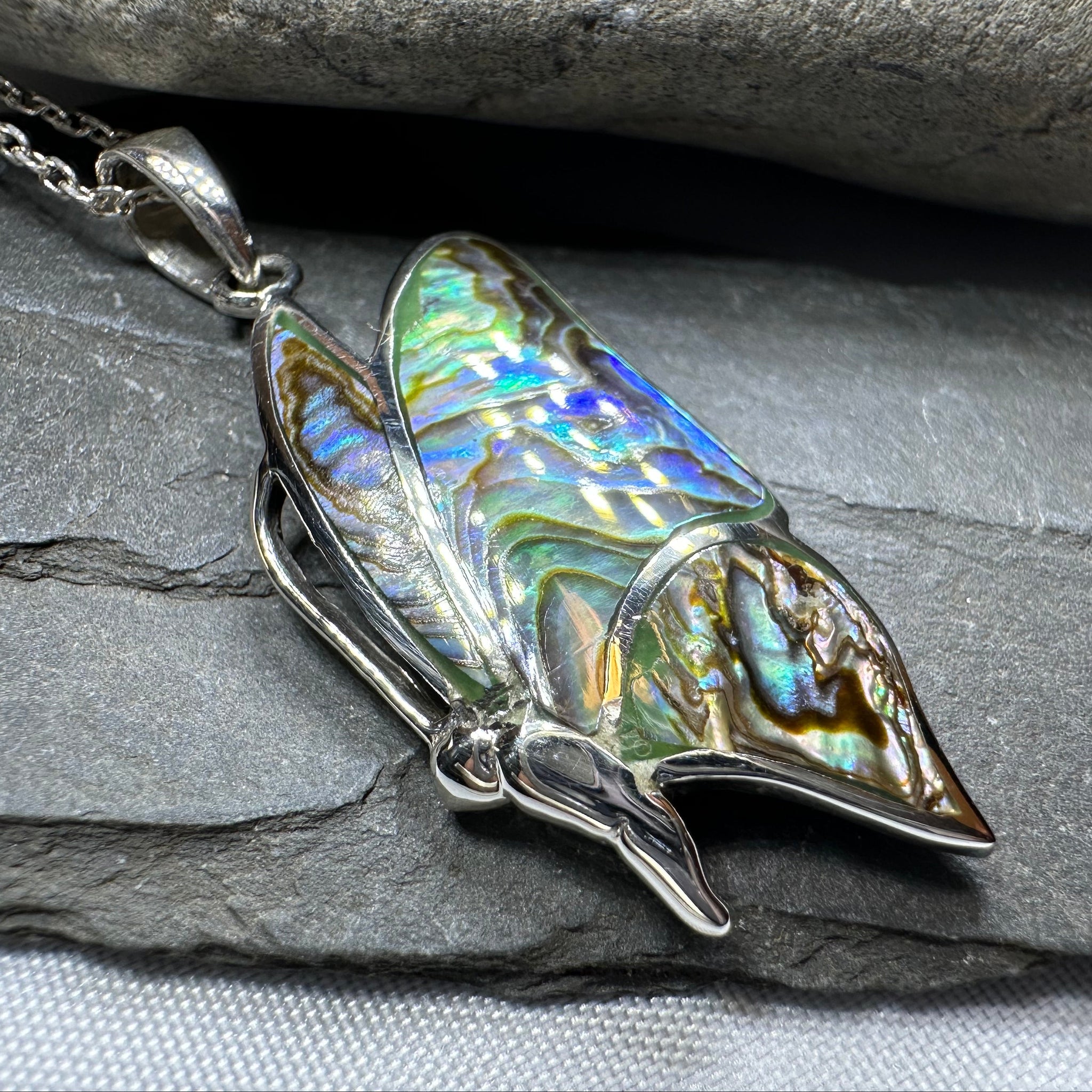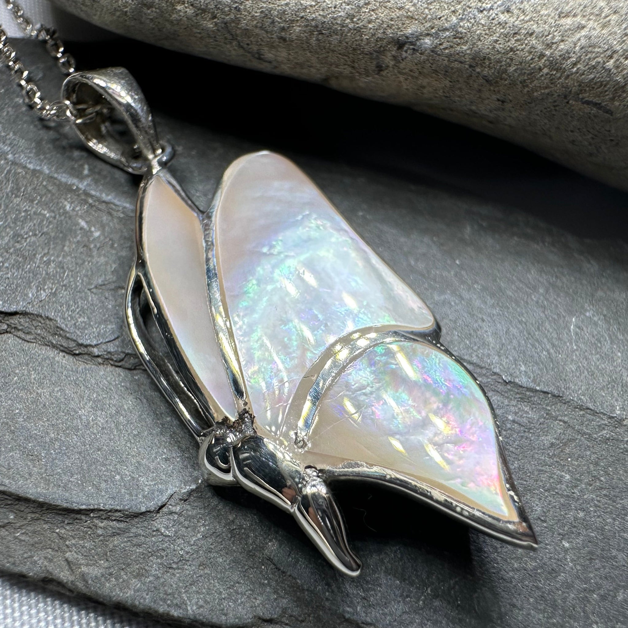 Carefully crafted from fine pure silver with natural shell (your choice) this necklace captures the beauty of the butterfly and adds a bit of grace and interest to all it touches.