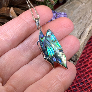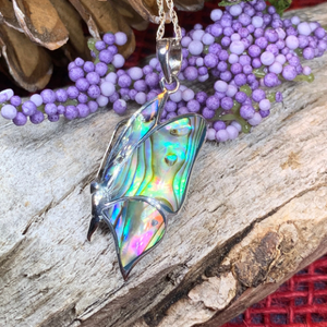 Solid sterling silver on an 18" chain. 1 1/4" x 3/4" pendant in your choice of shell inlay.