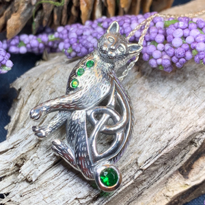 Meticulously crafted with attention to detail, this Salem Cat Necklace features intricate Celtic knotwork symbolizing eternity and protection. The carefully selected gemstones catch the light with subtle brilliance, creating an elegant accessory that transitions effortlessly from day to evening wear.