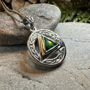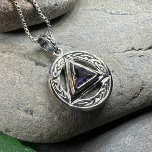 Solid Sterling Silver Gemstone Celtic AA Recovery Pendant