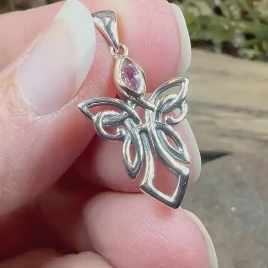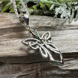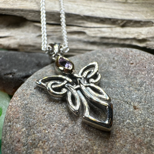 Made of solid sterling silver with 10k gold accents, the elegant lines of this Celtic knot create an angel pendant that will be cherished for a lifetime.