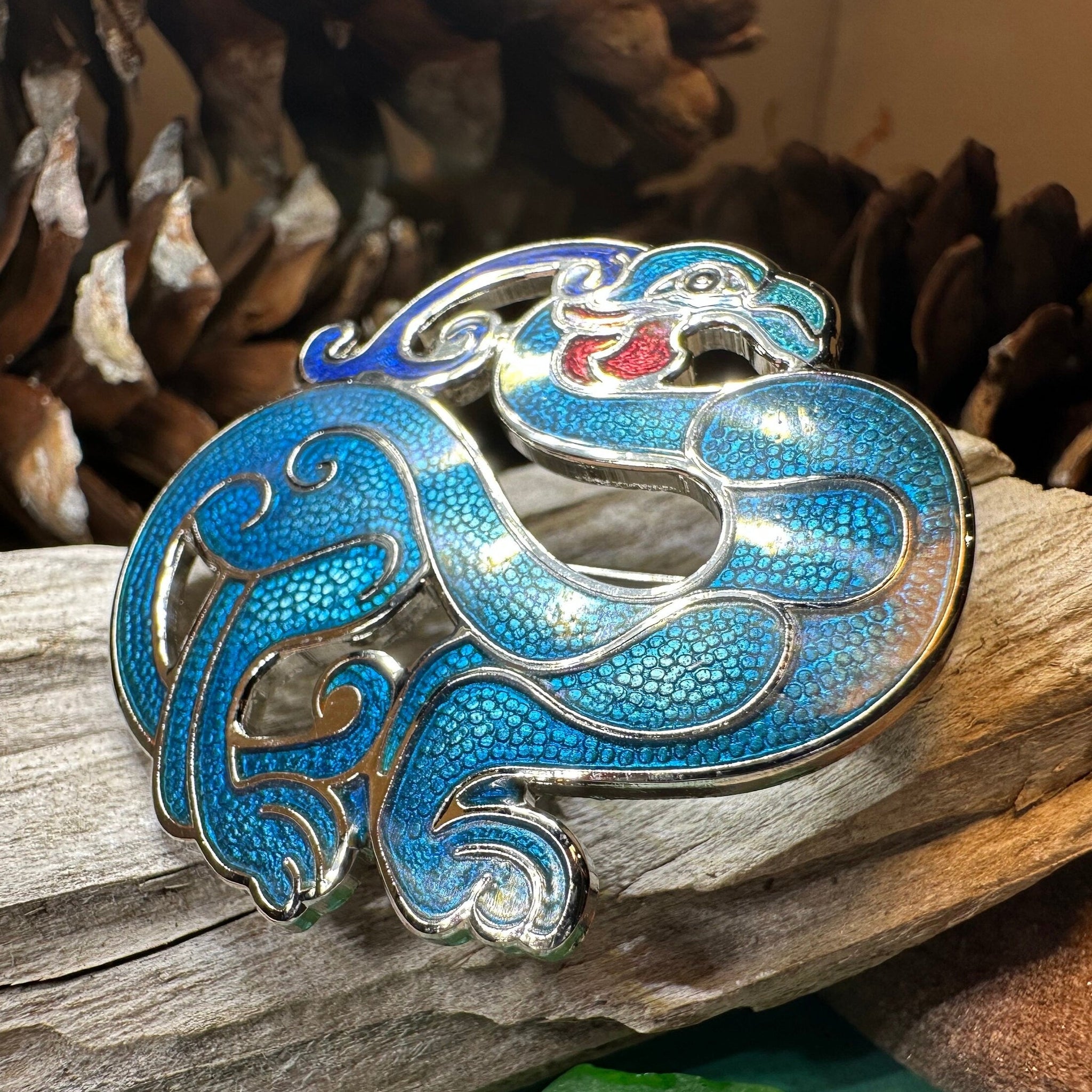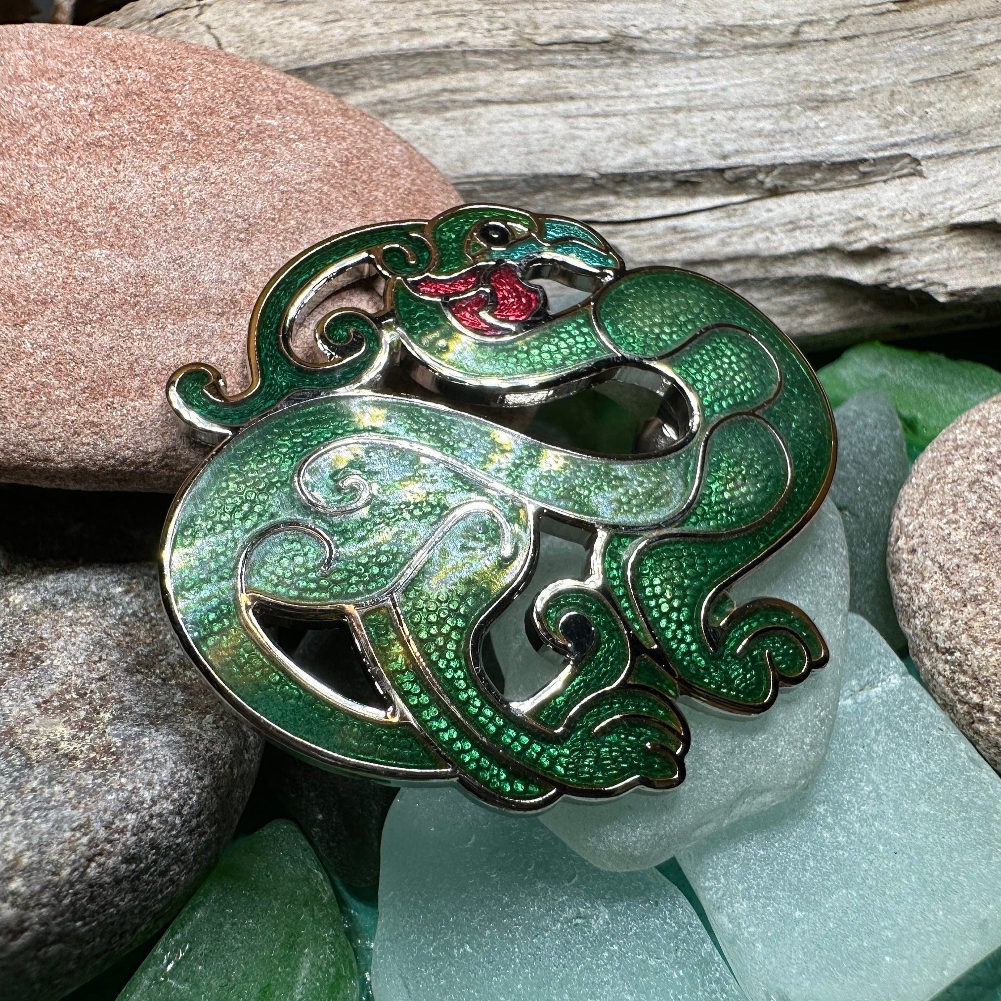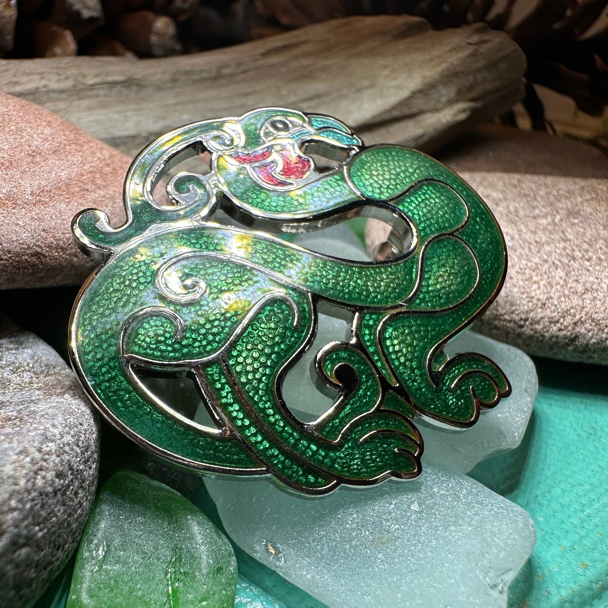 This beautifully detailed enamel brooch shows every bit of this intricate Celtic Bird based on designs from the Book of Kells. The perfect size for a jacket, lapel or sweater.