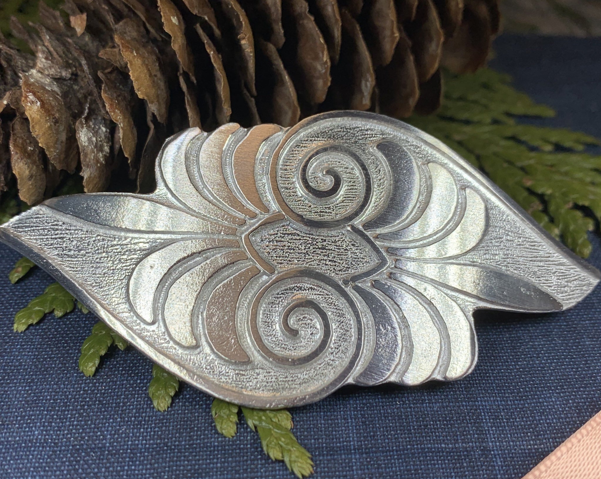 Pewter Celtic Blossom Hair Clip is a perfect accessory to dress up a ponytail, bun or any hair style. The design combines the Celtic spiral motif to create a stylized flower - a unique design that celebrates Celtic heritage. The detail on this piece is amazing!