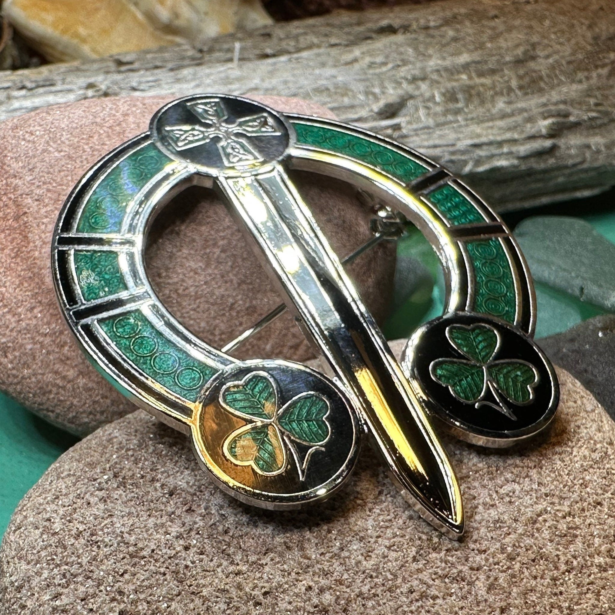 This handmade Celtic brooch is in high-quality golden bronze.