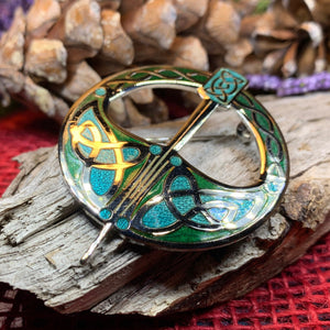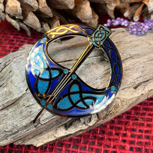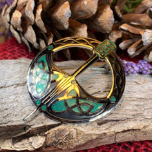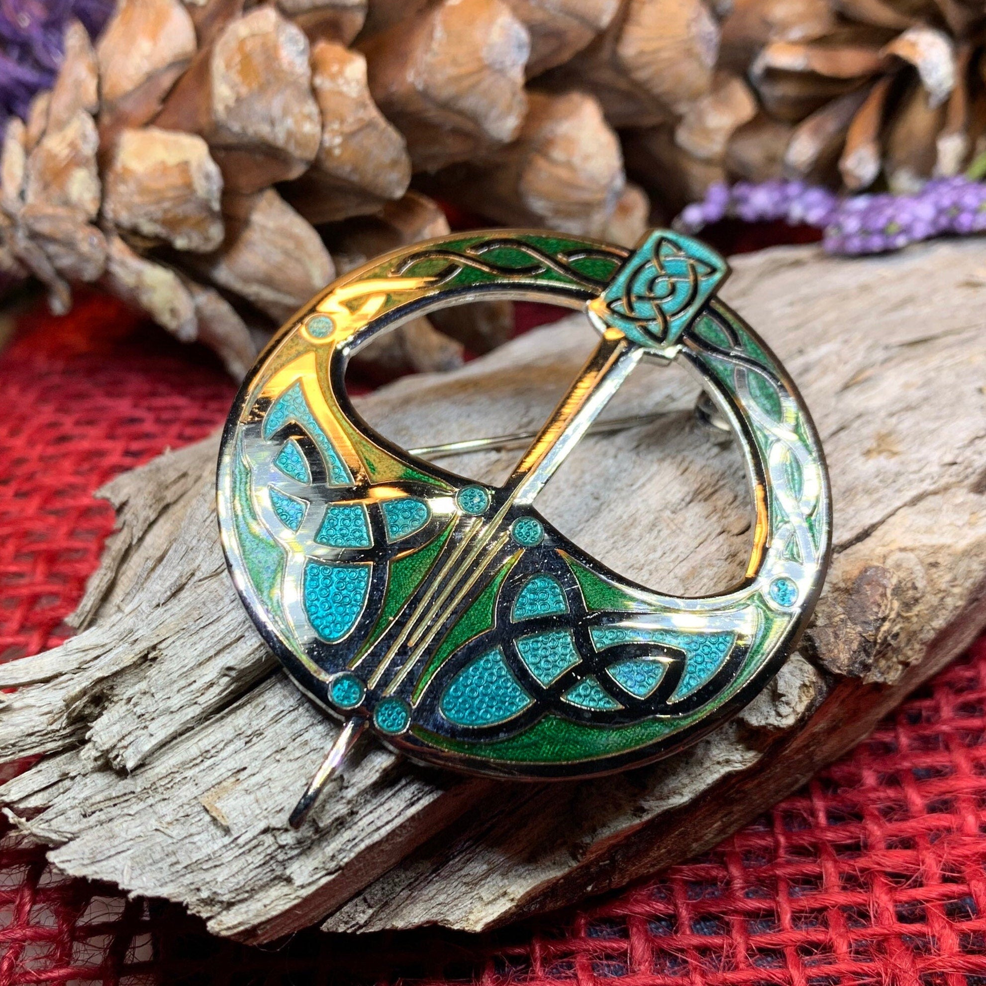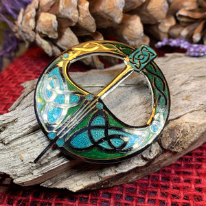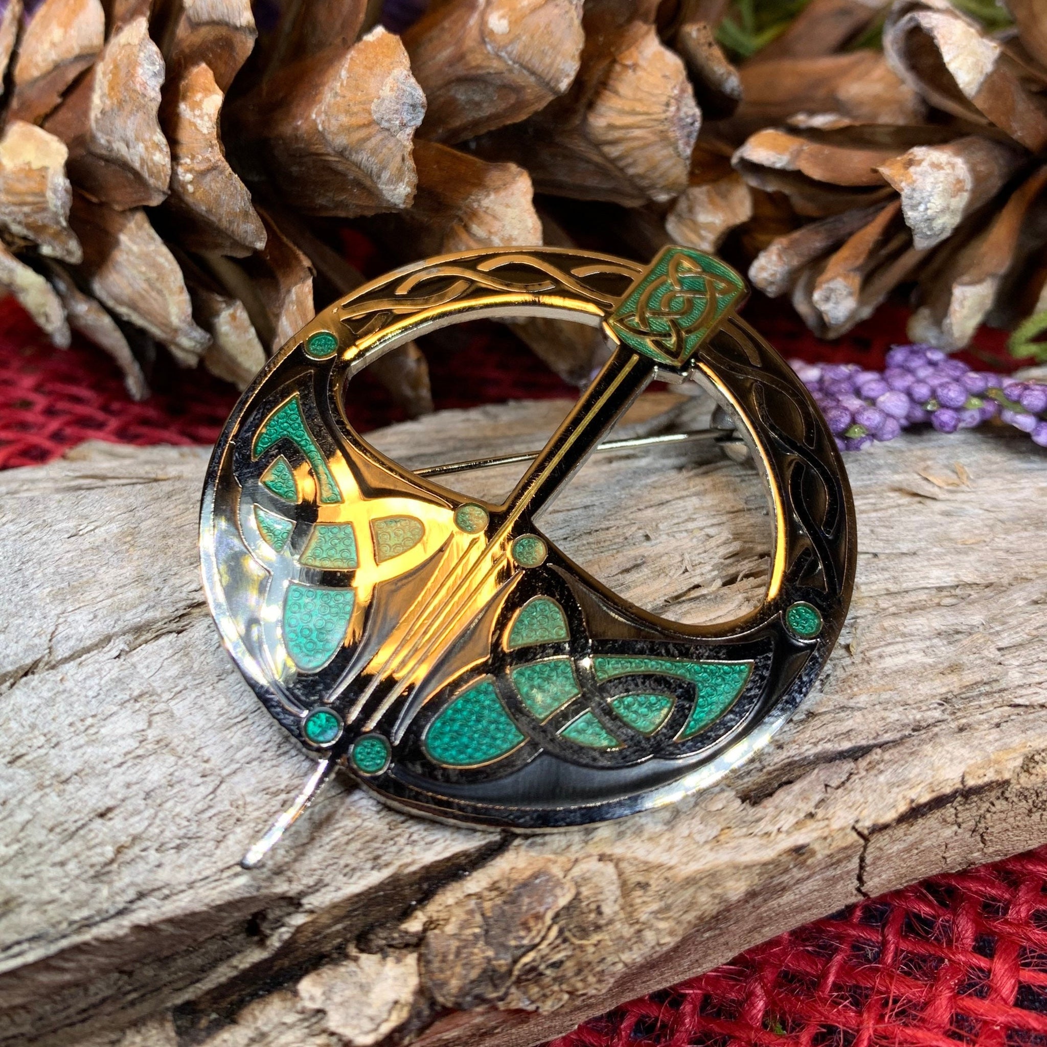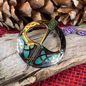 Silver-tone over pewter Celtic Tara style brooch in your choice of colors: Green or Green/Black.