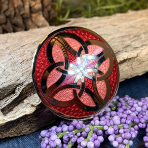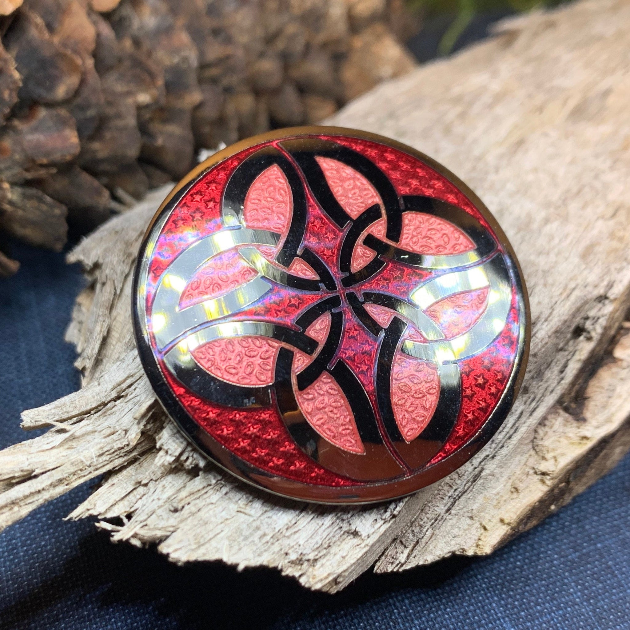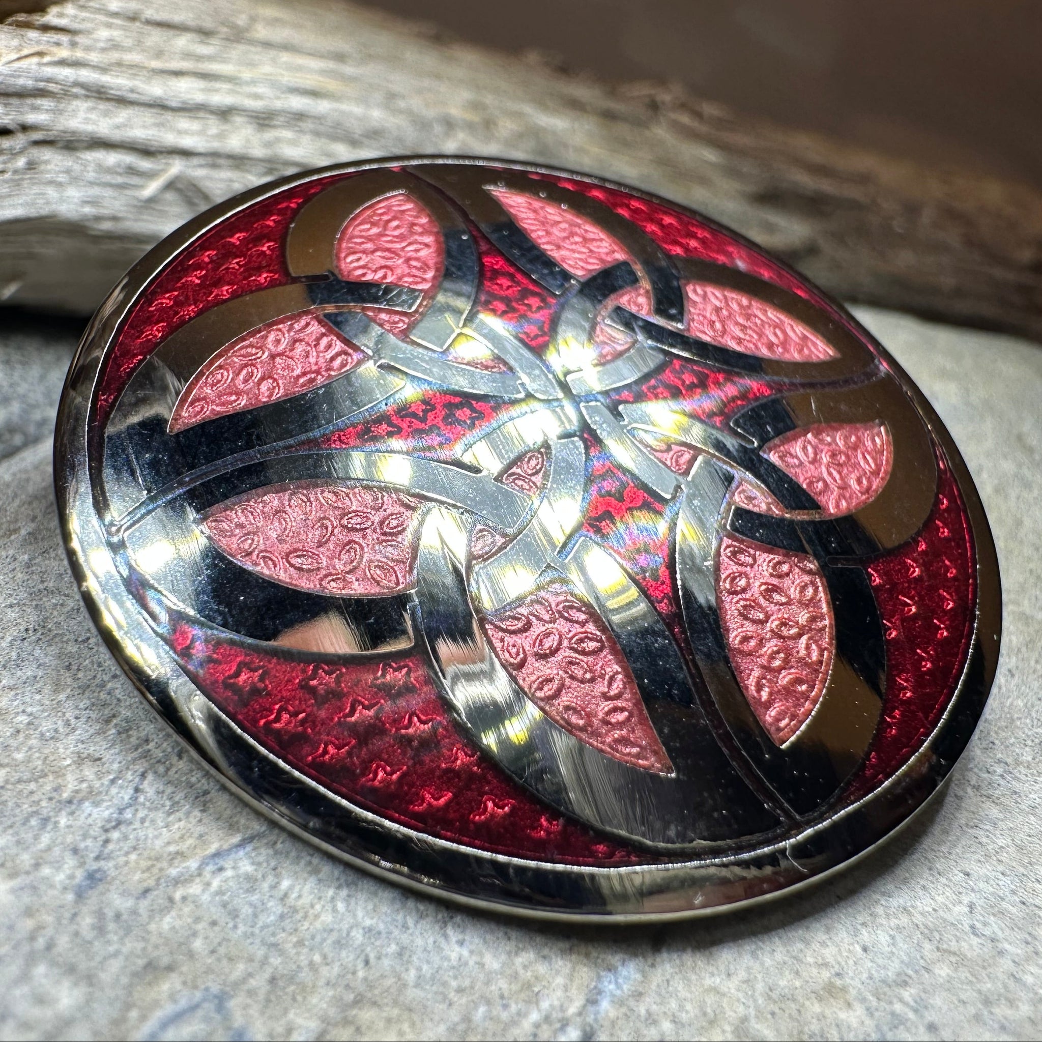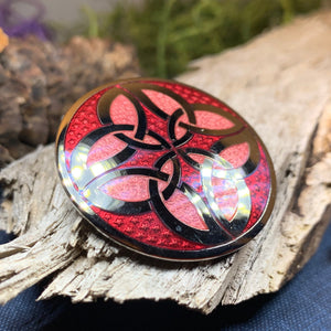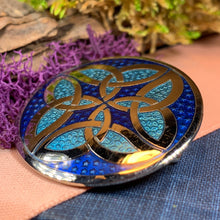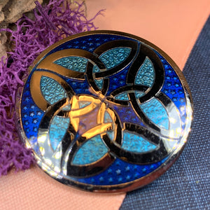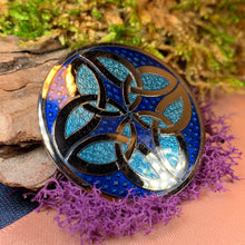 Silver-tone over pewter Celtic Trinity Knot style brooch in blue. A beautifully detailed brooch that will be a real attention getter!