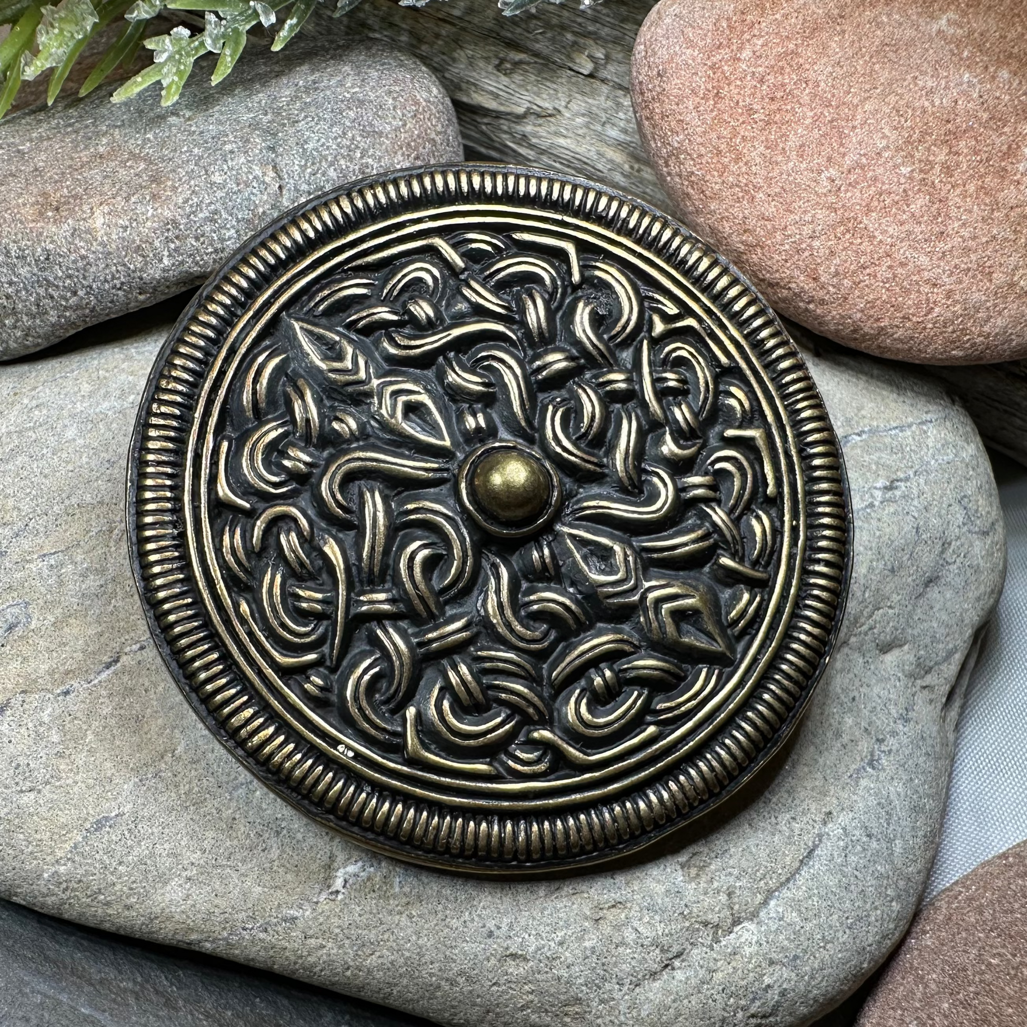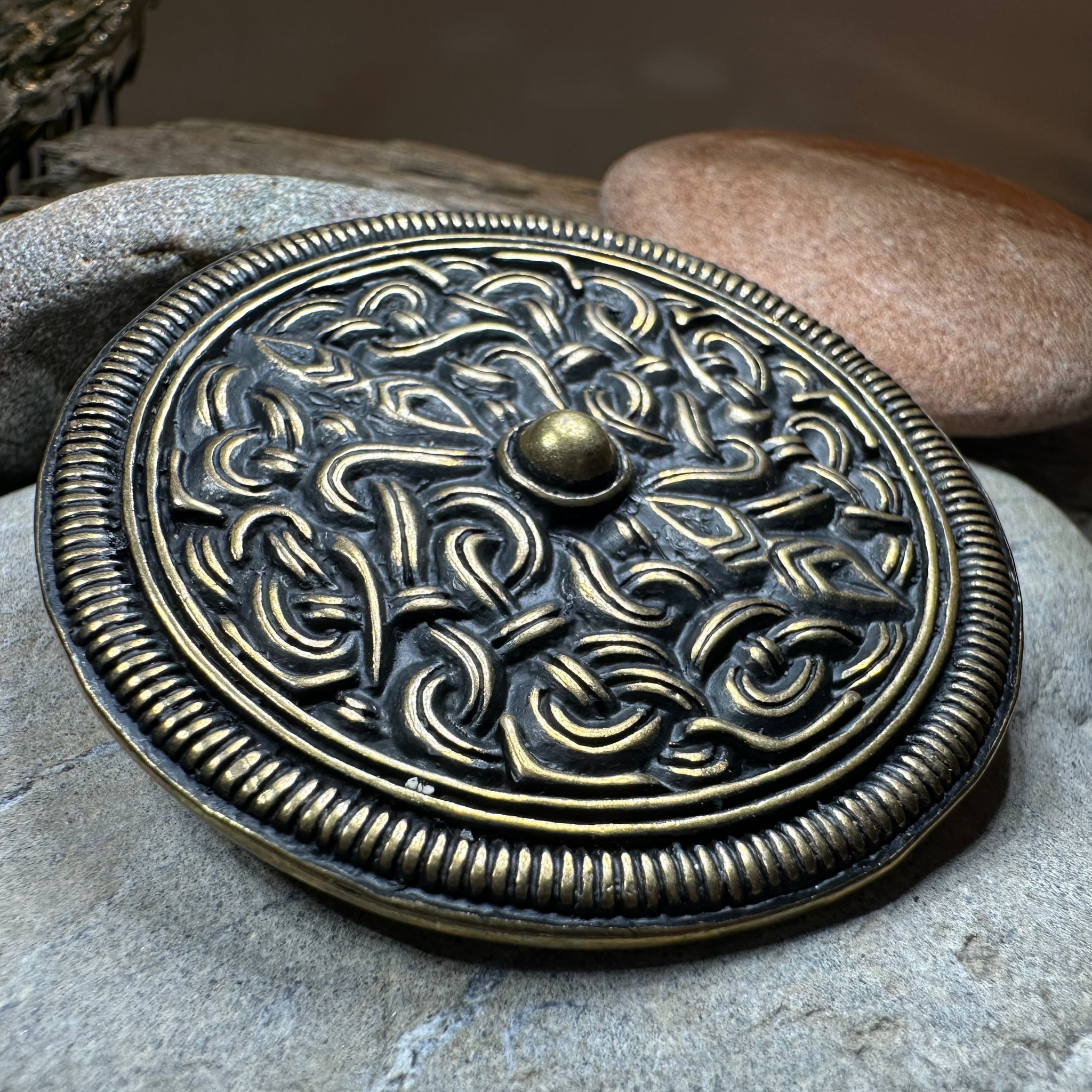The richly detailed brooch is a faithful copy of an original find from the Anglo-Saxon ship grave No. 17 at Sutton Hoo.