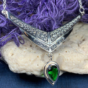 In antiquity, the Celtic Knot was a tasteful expression of inner love, passion, and strength. Beautifully engraved in history, Celtic knotworks have been the source of great cultural pride adorned in this sterling silver woven collar necklace embellished with your choice of authentic gemstone.