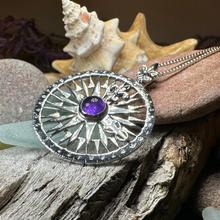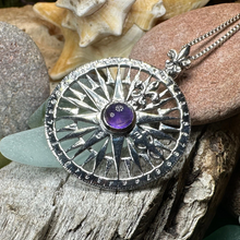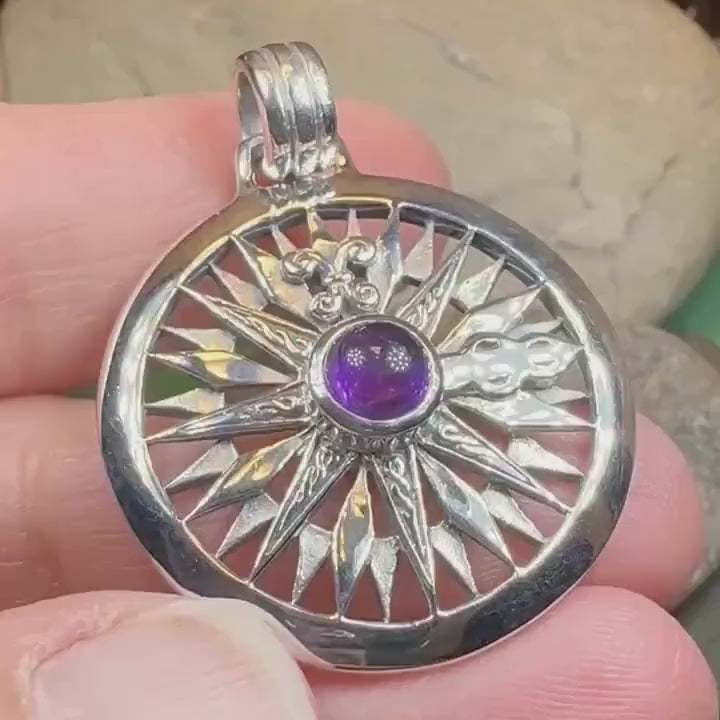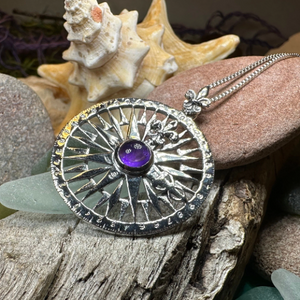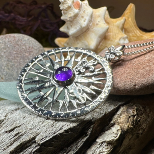 Celtic Fleur de Lis Solid Sterling Silver Compass Pendant with Amethyst on a silver chain. Throughout history, the symbol of the compass has held meaning, offering something for everyone. While the symbol is ideal for travelers, adventurers and free spirits, it’s also an excellent symbol to gift to a loved one.