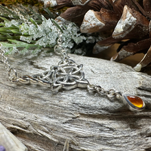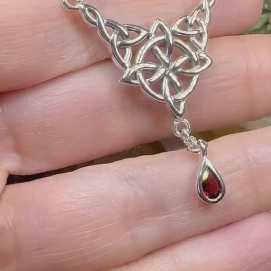 The quaternary knot is also called the protection knot. A beautiful necklace with a polished gemstone dangle or your choice.