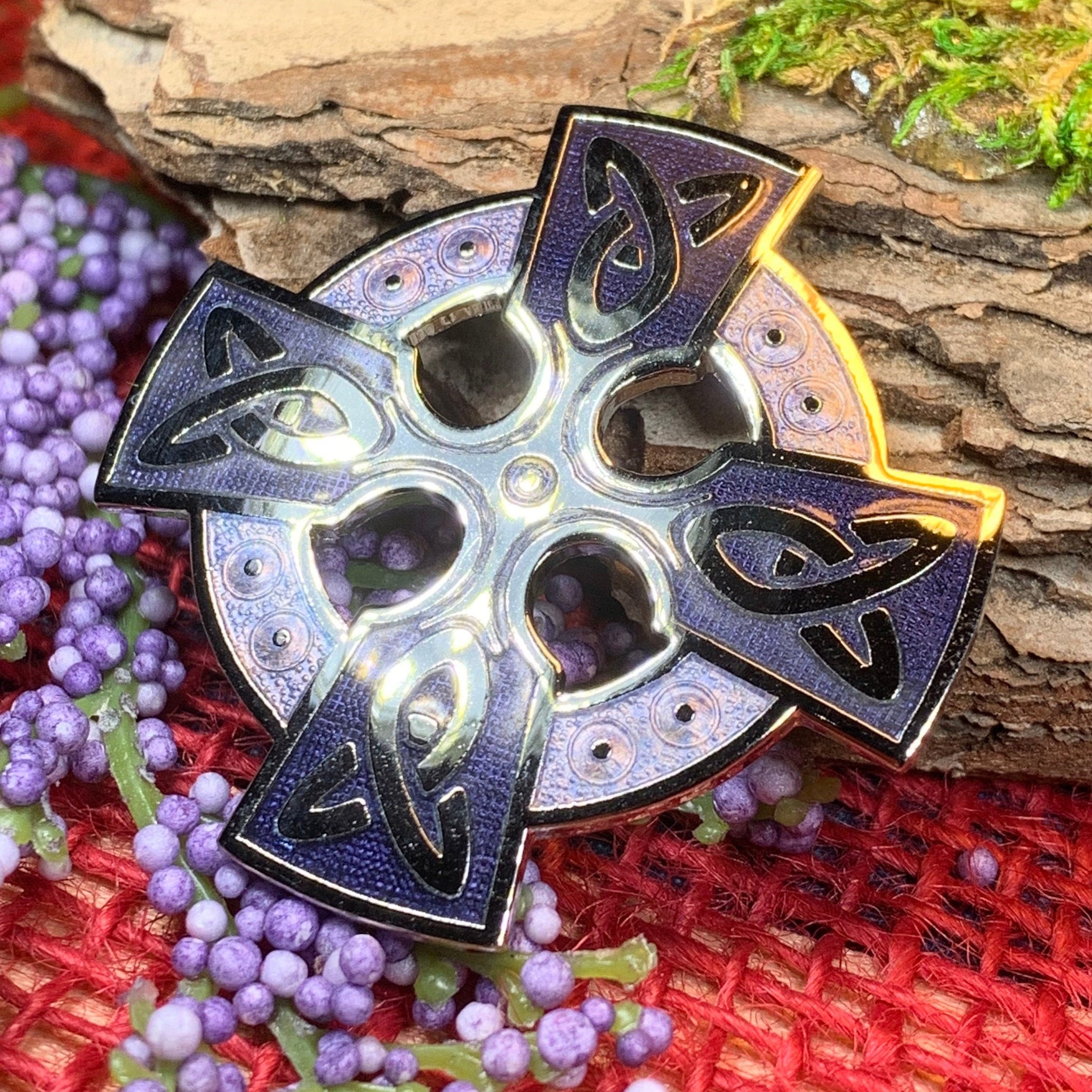 The symbolism behind the Celtic Knot is beautiful! The never-ending, intertwined lines of the know work date back thousands of years. An ancient symbol for the eternal nature of life and love. Combined with the ancient Celtic Cross, this brooch makes a lovely gift for any person of faith.