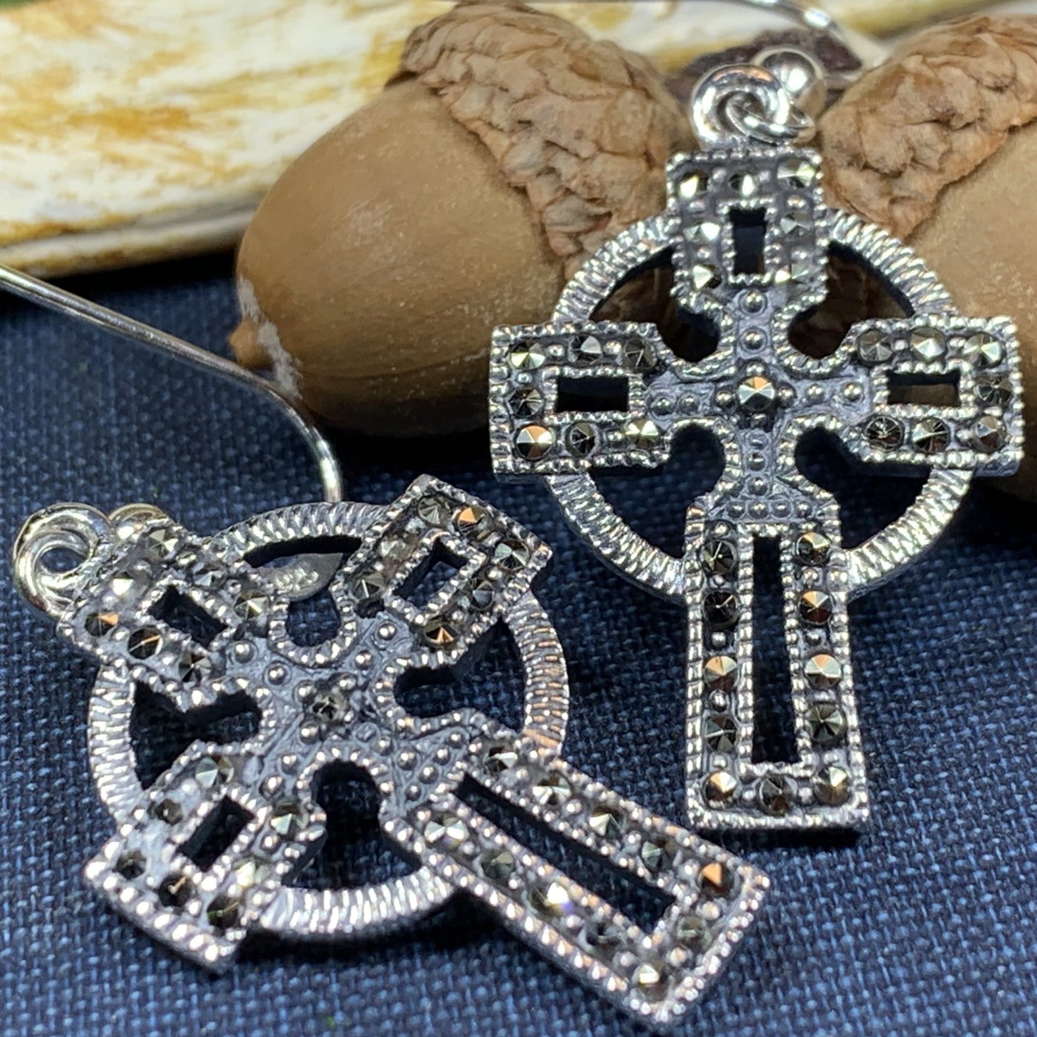 Solid Sterling Silver Celtic Cross Dangle Earrings
