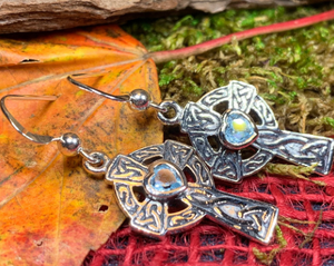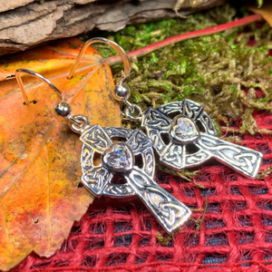 A highly attractive pair of Celtic Cross Sterling Silver Earrings, featuring a design based on traditional stone carved Celtic Crosses. They will delight lovers of all things Celtic, and the unique history of the Celts and their influence on our lives today.