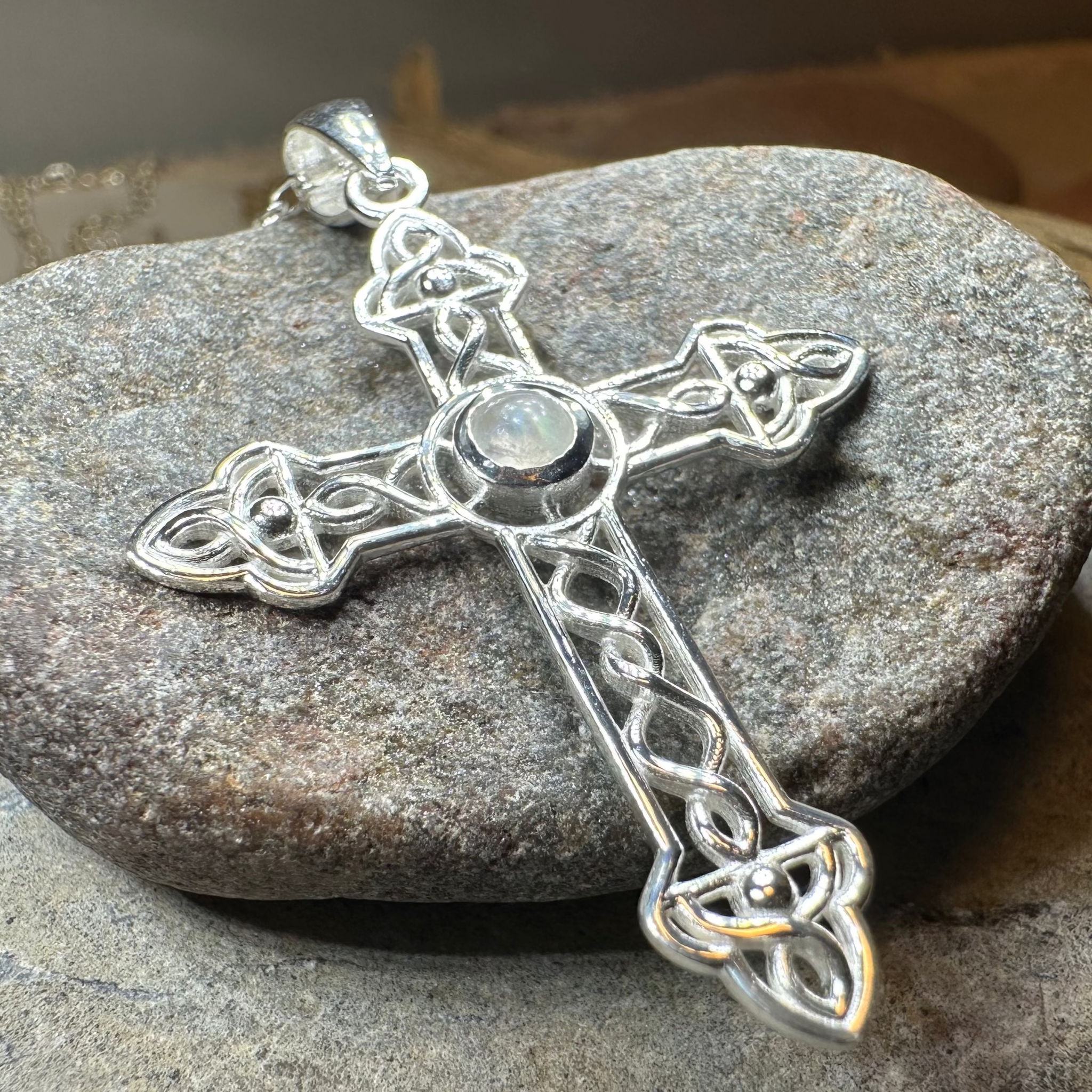 At its center, a radiant rainbow moonstone catches the light with an ethereal glow, representing hope, clarity, and spiritual growth.