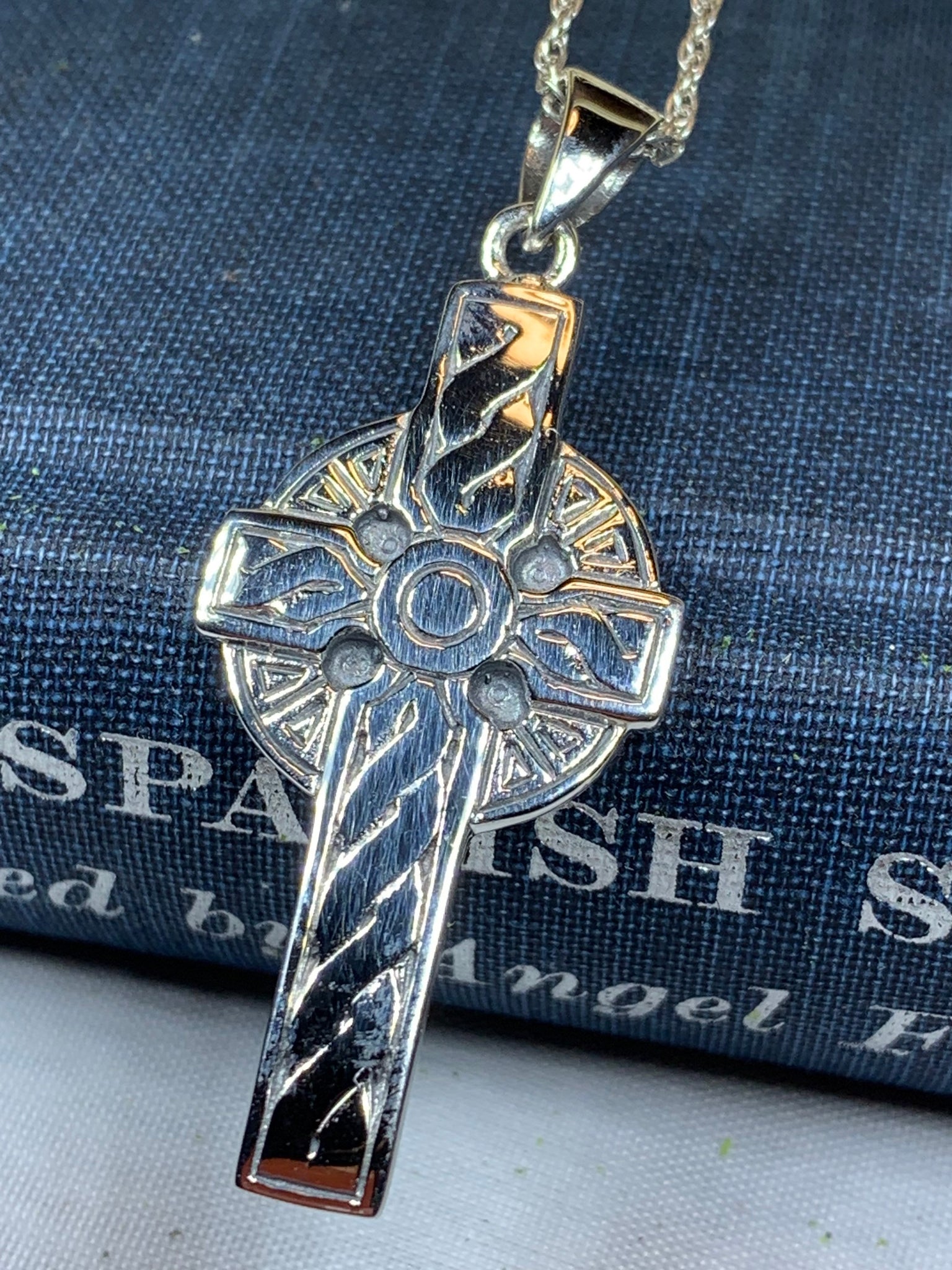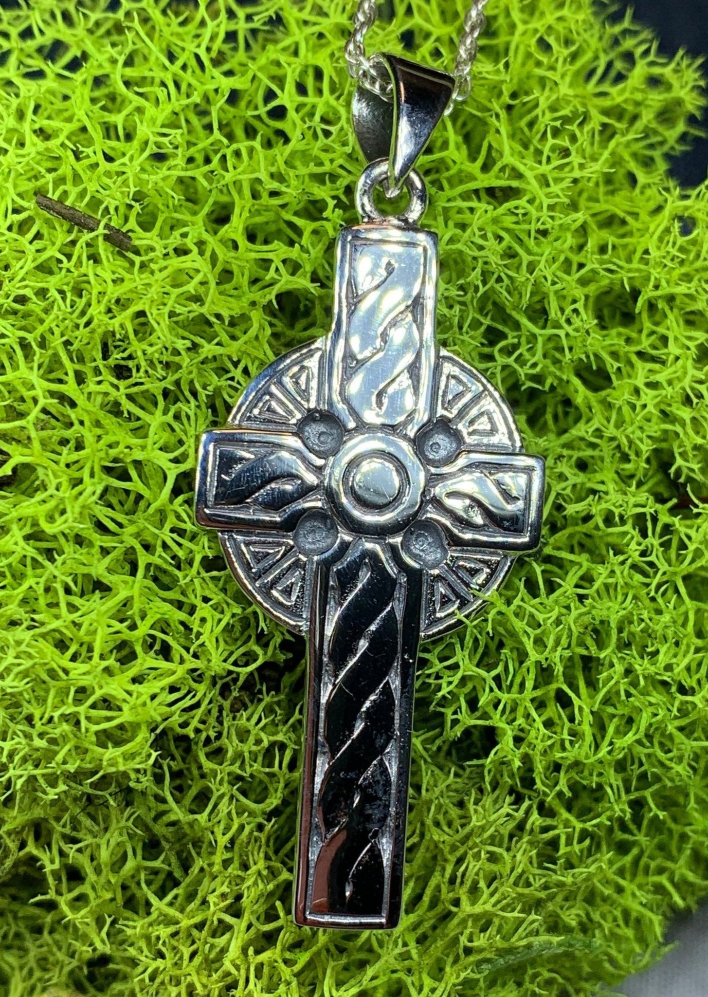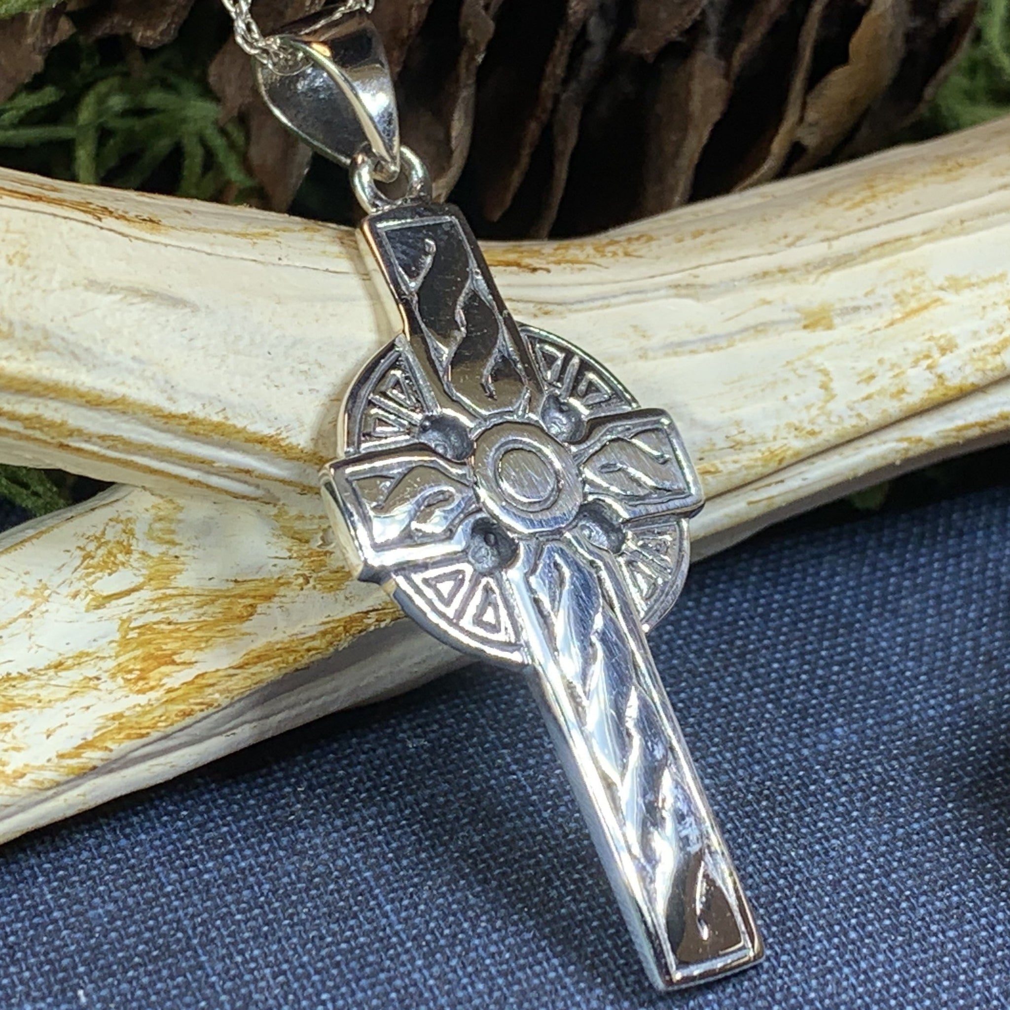 This cross is a replica of the many beautiful Celtic crosses found in Ireland and Scotland. A highly attractive Celtic Sterling Silver Cross, with a design based on a traditional stone carved Celtic Cross.