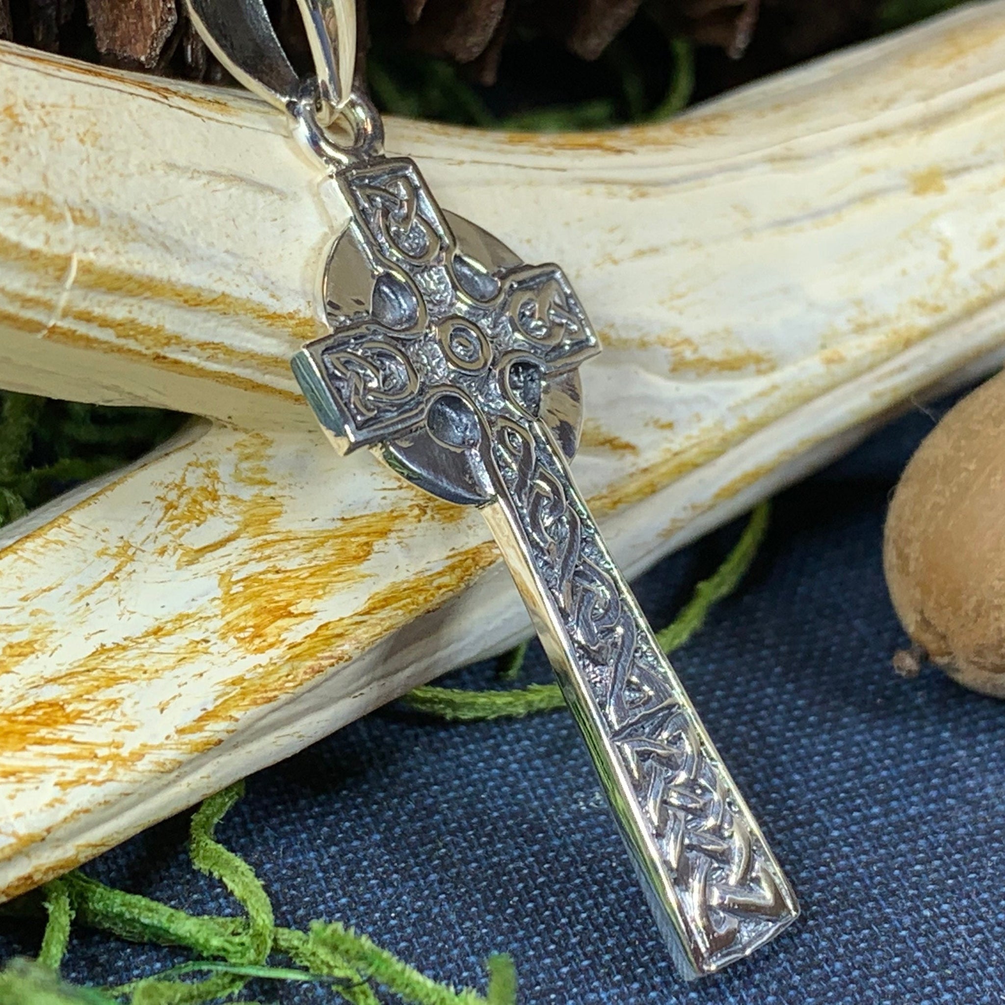 This cross is a replica of the many beautiful Celtic crosses found in Ireland and Scotland. A highly attractive Celtic Sterling Silver Cross, with a design based on a traditional stone carved Celtic Cross.