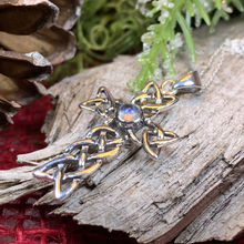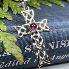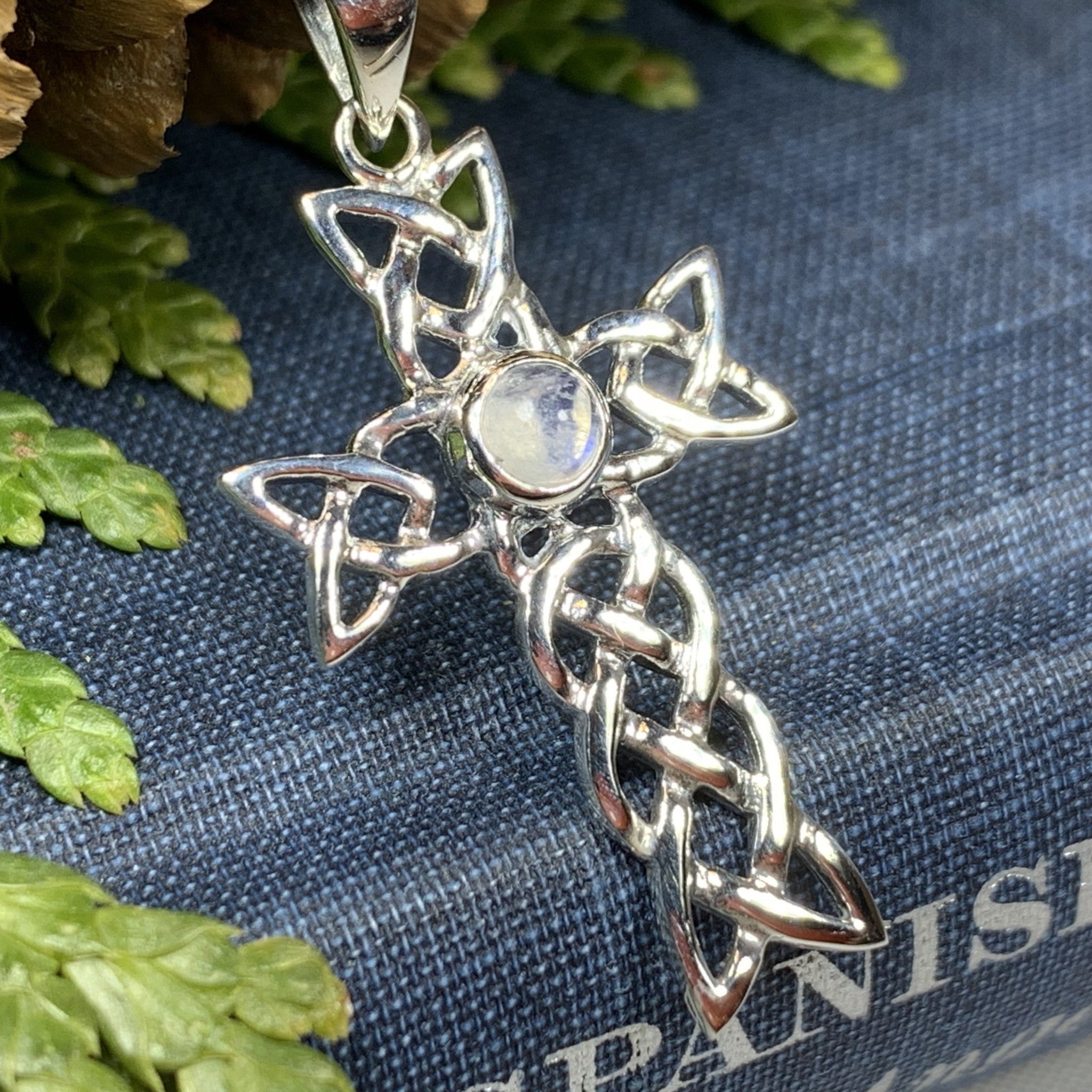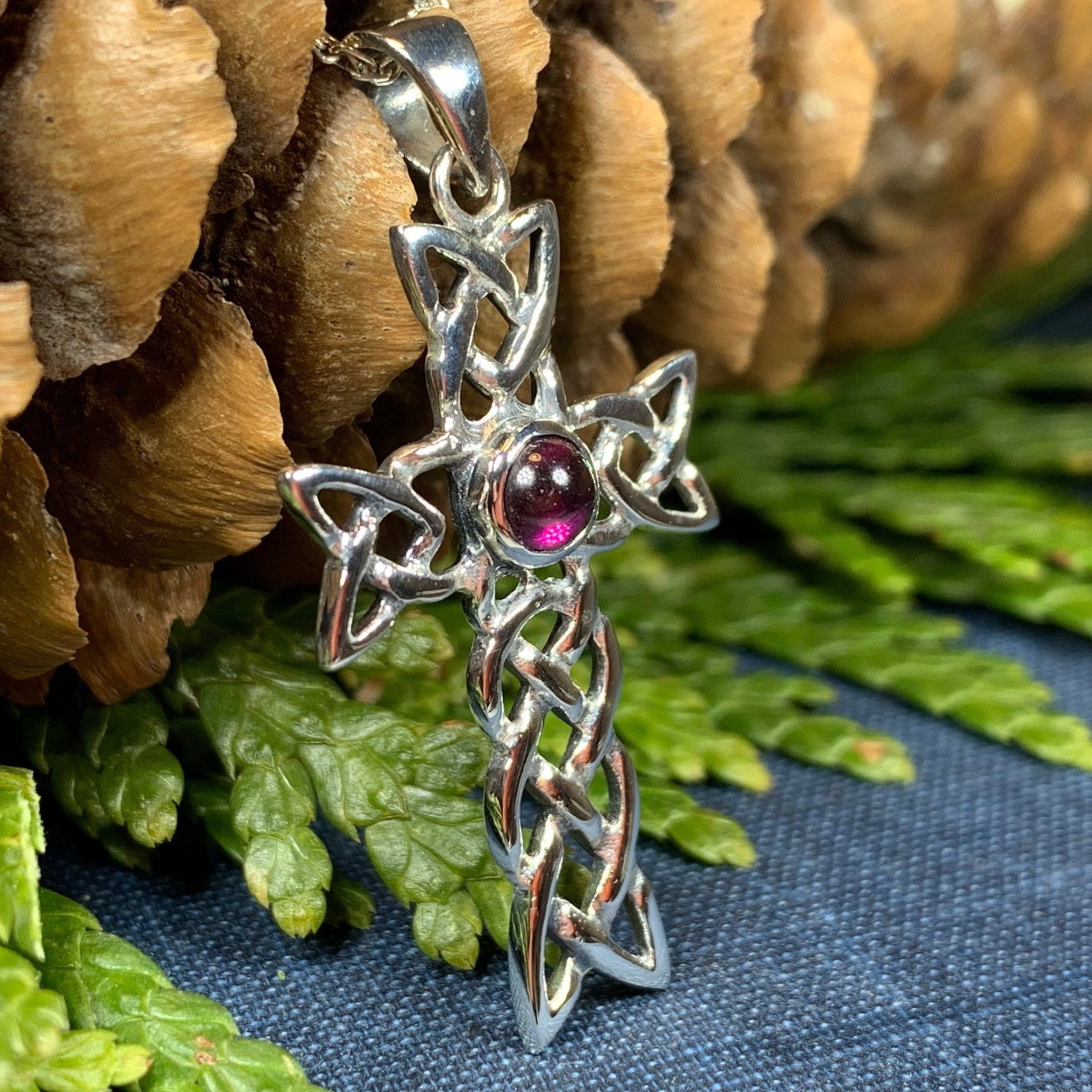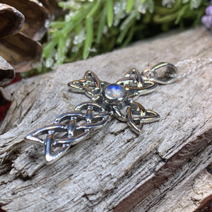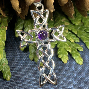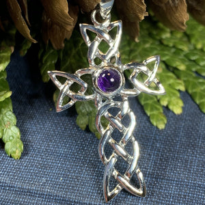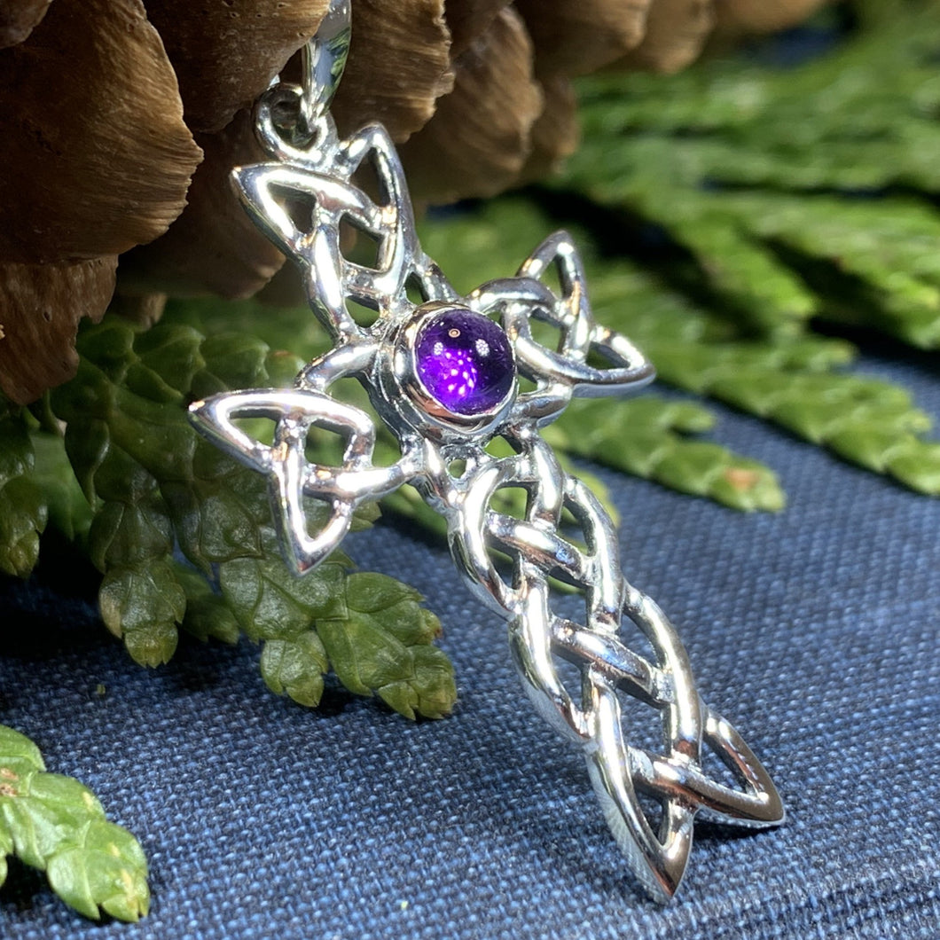 A highly attractive Sterling Silver Celtic Cross, with a elegant Celtic weave design based on a traditional Celtic crosses. Solid sterling silver with an authentic cabochon gemstone of your choice at the center (.5 carat stone)